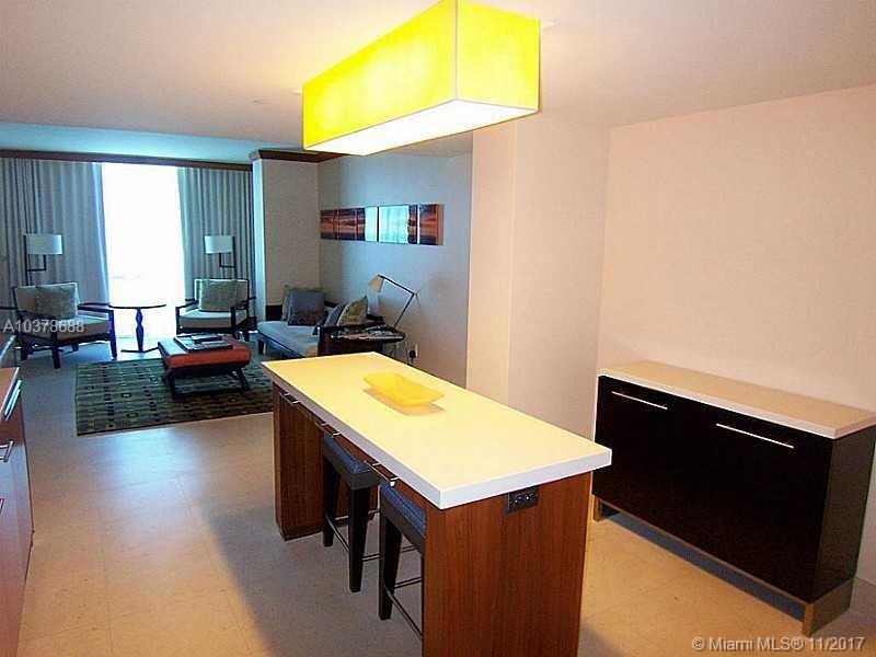 Lowest priced condo-hotel unit on the market at the prestigious Carillon Spa and Resort. This SW corner features the largest 1 bedroom floor plan available and is offered turn-key. Configured with 2 queen beds in the bedroom, a spacious bathroom and a kitchenette with under-counter refrigerator, dishwasher, microwave and 2 burner cooktop. SW corner with city/sunset view. 70,000 sf fitness/spa, 4 pools, salon, concierge, gourmet restaurant, pool side cafe, bar, 24hr security, valet, boutique, wellness staff, jog/bike beach path along beach. Owner's closet. Unit is not currently enrolled in the hotel rental program but is eligible to be entered or you can rent out nightly on your own. Door #402 / Deed #415. See photos.