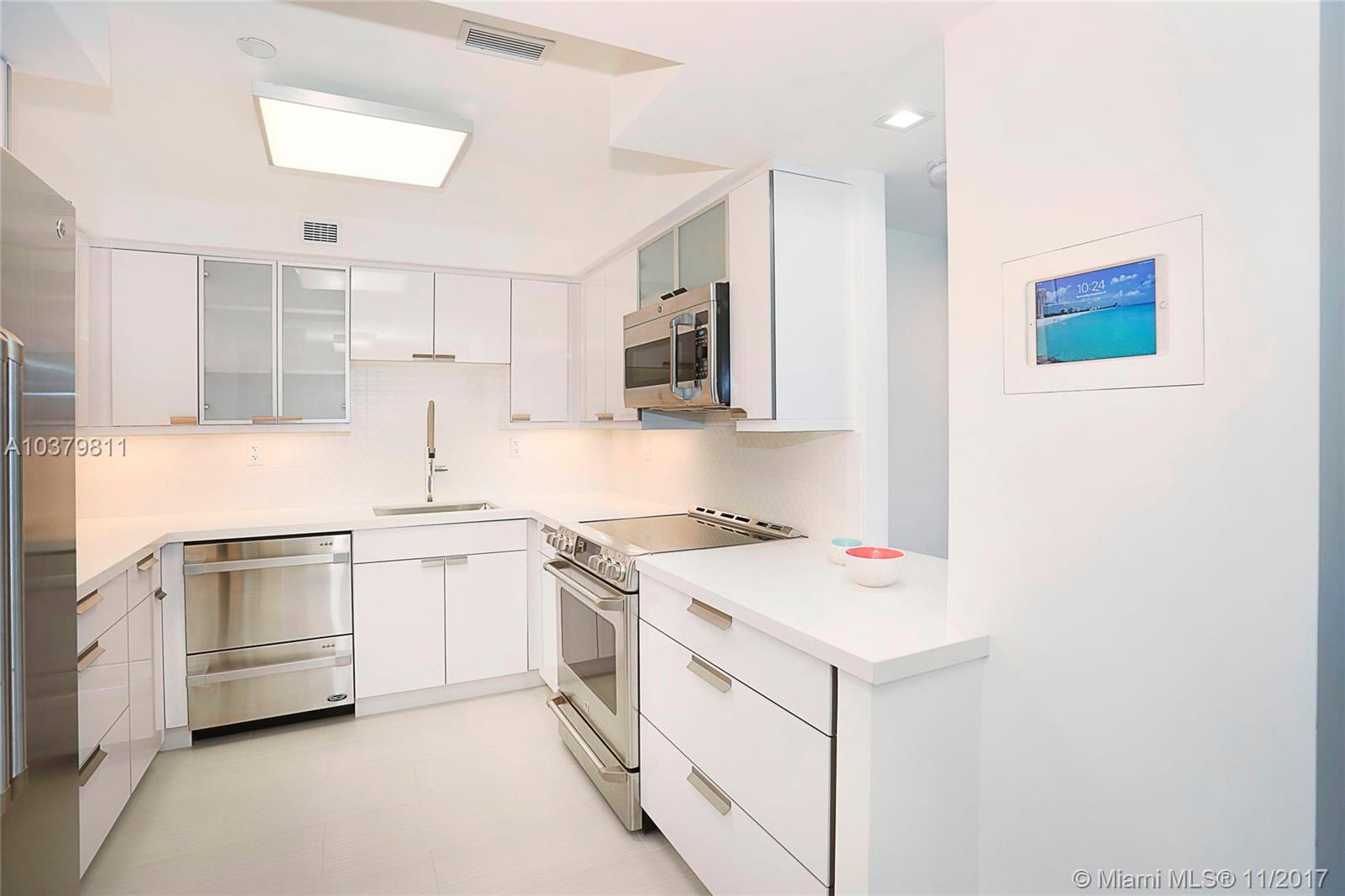 Luxury 2 bed/2bth with balcony offers resort living in the Roney Palace. Views across Biscayne Bay to Miami skyline and magnificent sunsets. The property completed a comprehensive face lift in 2017 and now boasts world class amenities. Apartment remodel with highest level finishes completed late 2017 includes top of the line upgrades. Home automation system accessible via an app on any smartphone allows you to control the thermostat and light switches from anywhere. Wall integrated IPad controls all lights, thermostat and access to the Web. Dual window treatments are automated with remotes. Carrara Arabescato marble throughout in both bathrooms. All electrical outlets with USB power output. New plumbing water lines throughout apartment, porcelain glazed floors. Partially furnished.