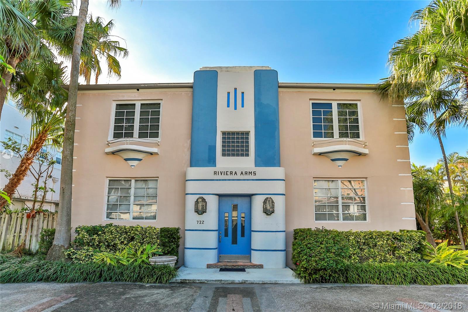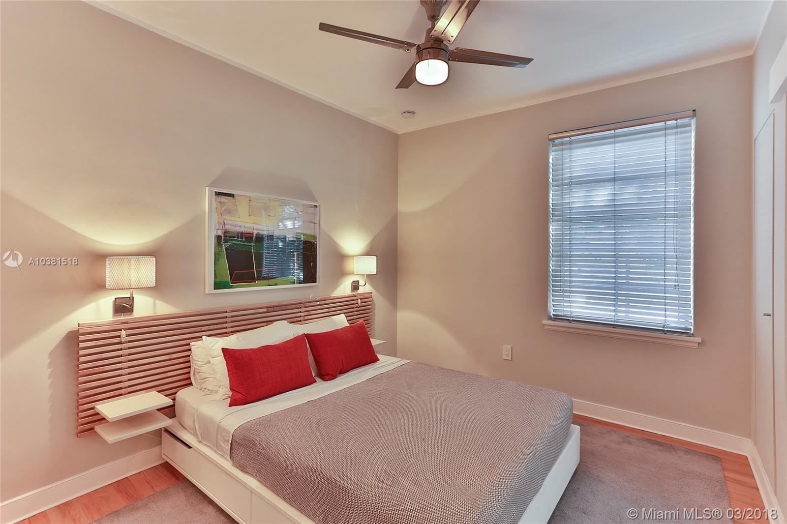 NEWLY RENOVATED WITH INTEGRITY TO ALL ARCHITECTURAL DETAILS THROUGHOUT-Electric, Plumbing, Paint, Impact Windows, A/C Kitchen, Fans, Org Hardwood Oak Floors. Well maintained, gated, Art Deco building designed by Henry Hohauser in 1932. CORNER UNIT: 1st & 2nd Floor, no neighbors above! QUIET & BRIGHT:Unit faces South with view to PRIVATE GARDEN. No exposure to the street or alleyway. Generous setbacks and rear common garden enhance this unit/bldg. Built in shelving & outfitted closets, Bloomberg Fridge, Bosch Dishwasher, Nutid Oven all SS, Granite tops, Air-Play enabled surround sound. Offered for sale totally furnished. Just bring your personal effects! Easy to show with notice.