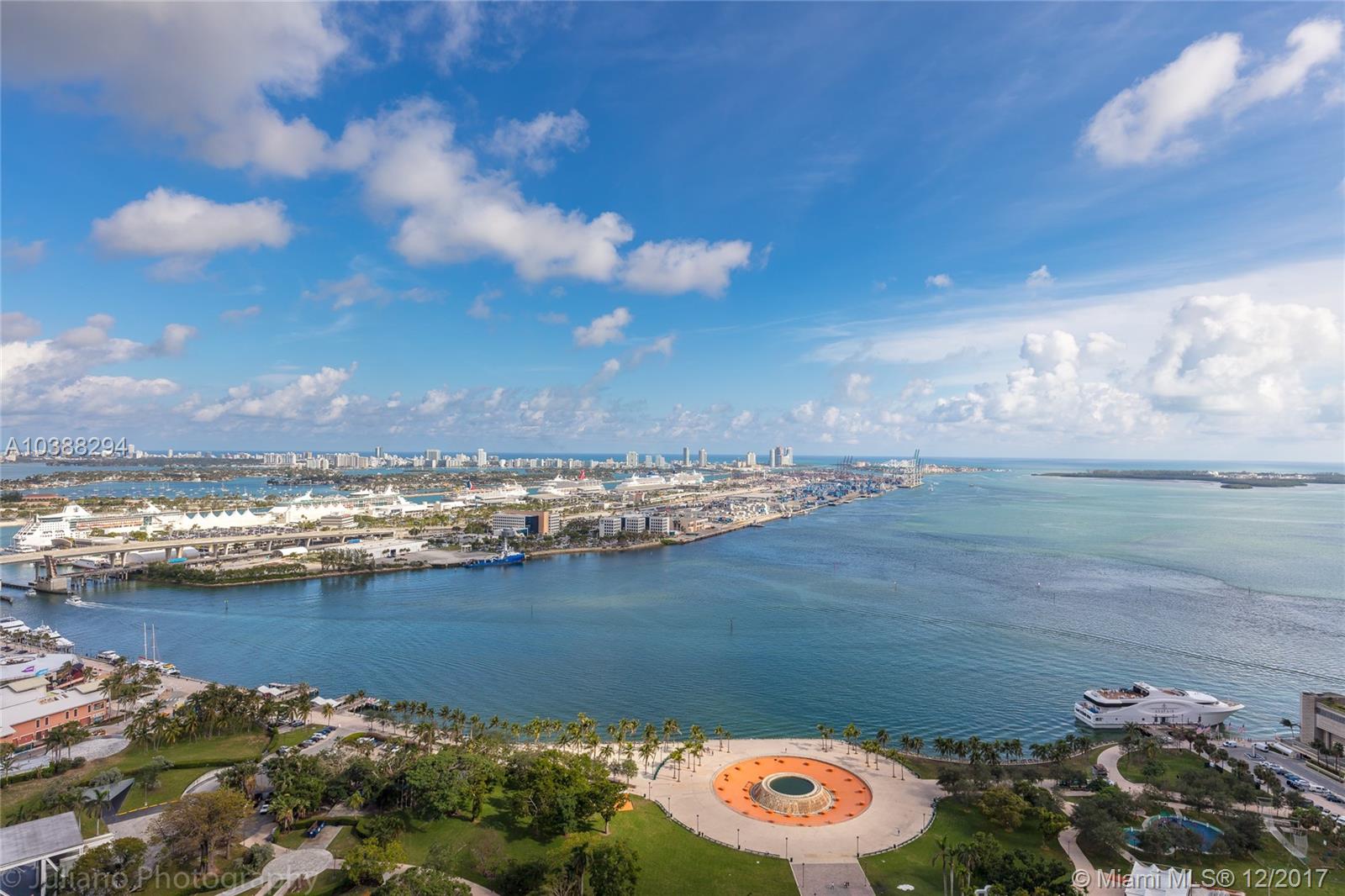 Immaculately remodeled residence with direct east views fronting Biscayne Bay and extending to the Atlantic. The uniquely positioned open balcony of unit 3806 gives a front roll seat to the Miami Cruise Port, 4th of July Fireworks, and New Years countdown. Great floor-plan includes 2 bedrooms plus an enclosed Den and 2 completely re-tiled bathrooms. Porcelain floors extend throughout the apartment including the balcony. This unit offers a large kitchen with ample cabinet space and generous closet space in all bedrooms. 50 Biscayne is a well managed building with a strong financial backbone and superb amenities, including one the best pool decks in the area and large fitness center.