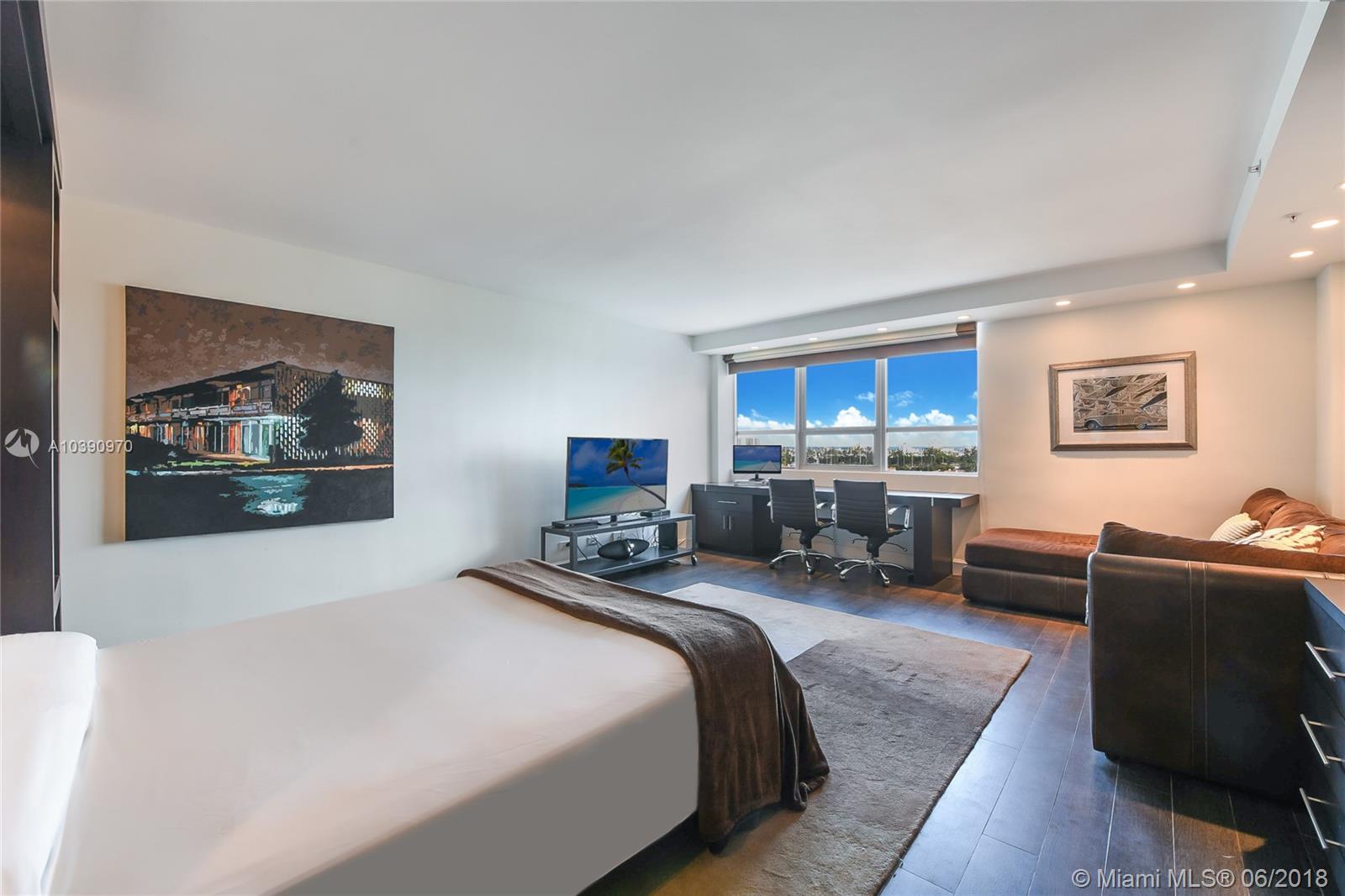 Completely Renovated Studio in the Heart of South Beach! Custom Carpentry including Murphy Bed, Desk/breakfast area, Armoire, & Kitchen Cabinets. High-end Appliances (oven/range, microwave, dishwasher, beverage ctr,& refrigerator w icemaker), mosaic tile backsplash & Silestone counters.Totally Renovated Bathroom. Lots of added storage & low-maintenance porcelain floors throughout. Custom black out window treatments. Walking distance to Lincoln Road & minutes from the beach.Amenities include Infinity Pool, Spa, Jacuzzi, World Class Fitness Center with yoga, spinning, boot camp classes, beach volleyball, day spa/salon, restaurant with full bar providing pool lounge service, doggy day care, on-site dry cleaners and market/liquor store. Flamingo South Beach offers the best in 1st Class living!