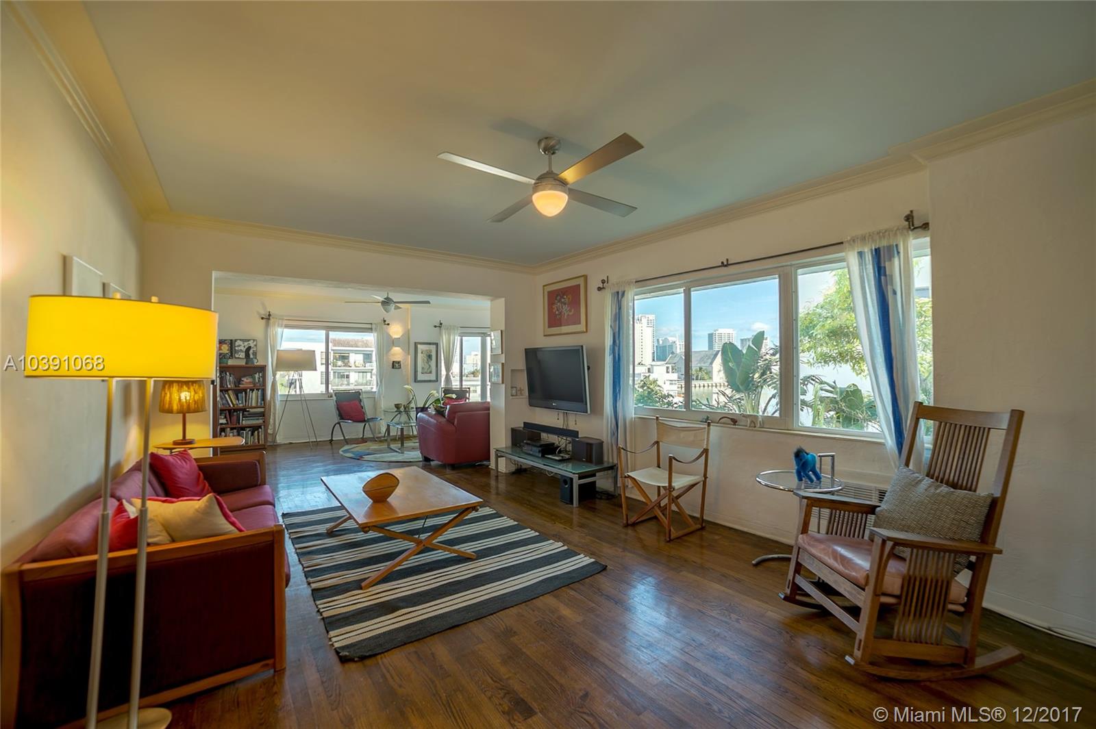 PH 6-C is the best unit in this 16 condo waterfront Art Deco walk-up gem by famed architect Martin L. Hampton. This east facing corner on the 3rd floor boasts breathtaking views of the canal & bay. Hurricane impact windows surround the condo filling all rooms with sunlight. The condo offers original hardwood flooring, an upgraded kitchen with top tier appls. such as Miele, Bosch and GE, a vented hood & gas stove. Baths remain in their original but great condition adding to its Art Deco charm. There are custom built-ins such as a Murphy bed in the 2nd bedroom. Finishing touches such as crown moulding & soothing colors add character to this spacious condo. Only a short walking distance to the beach, great restaurants/shops & 5 mins.to Normandy Golf Course make this condo a fantastic buy!