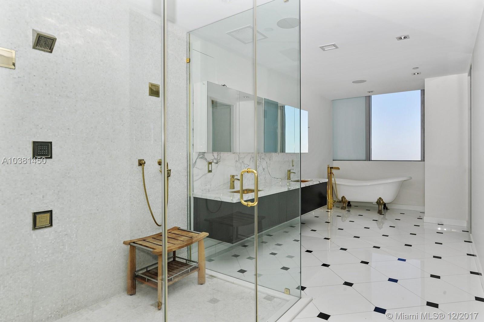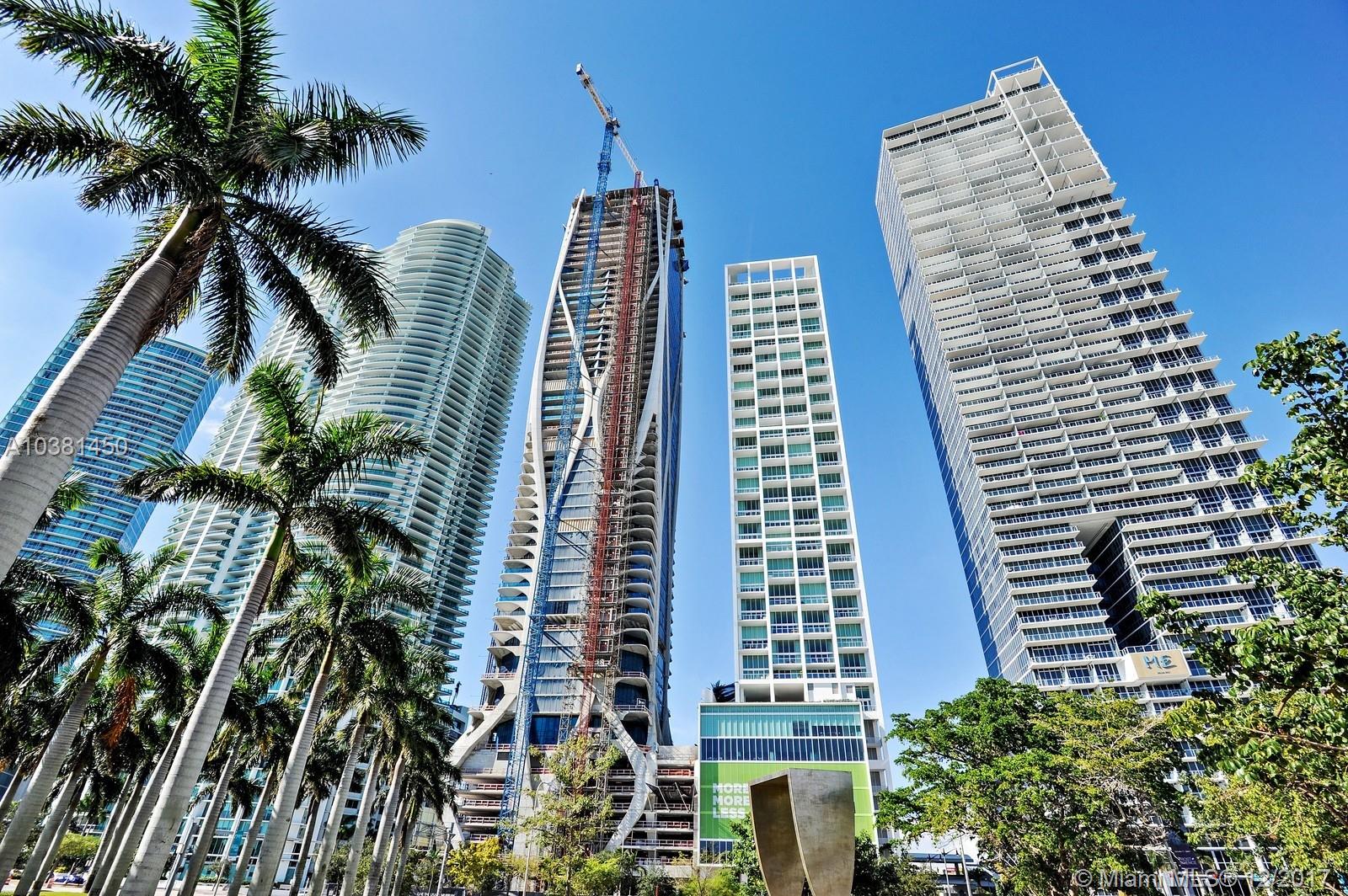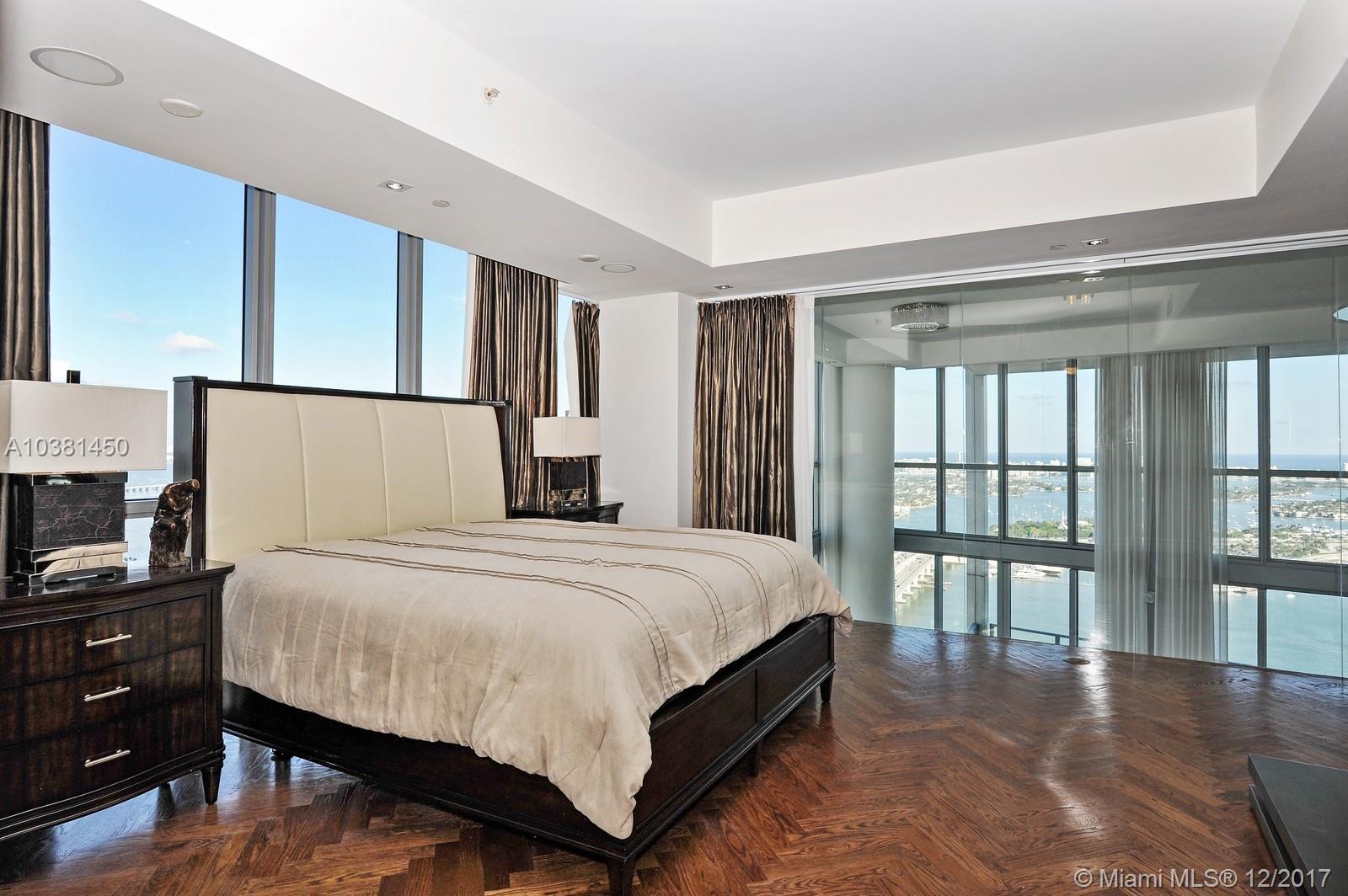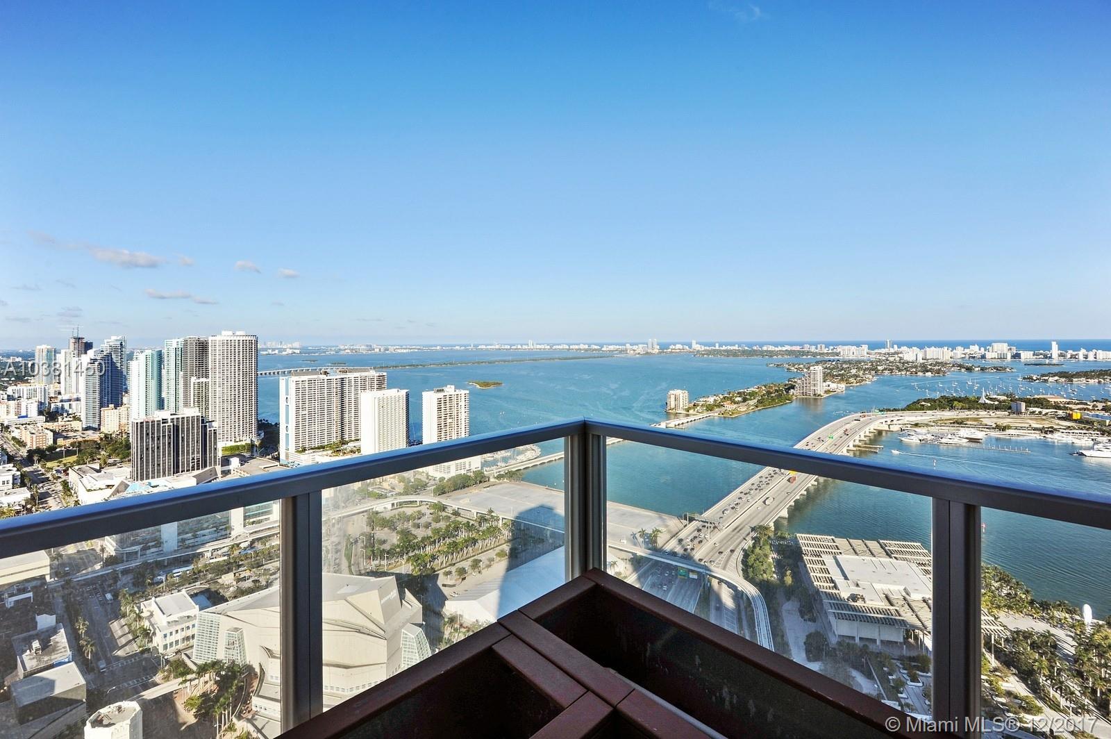 This spectacular 5,475 square foot two-story custom combined high-floor residence offers triple exposure with spectacular views and light through floor to ceiling windows. Exceptional interior features include marble and wood floors throughout, private foyer, soaring 20 foot ceilings, den/game room, full service wet bar. Open kitchen equipped with appliances by Viking and Sub-Zero. Large terrace ideal for indoor/outdoor entertaining. Assigned parking (4). Enjoy unobstructed views of the Miami Skyline.