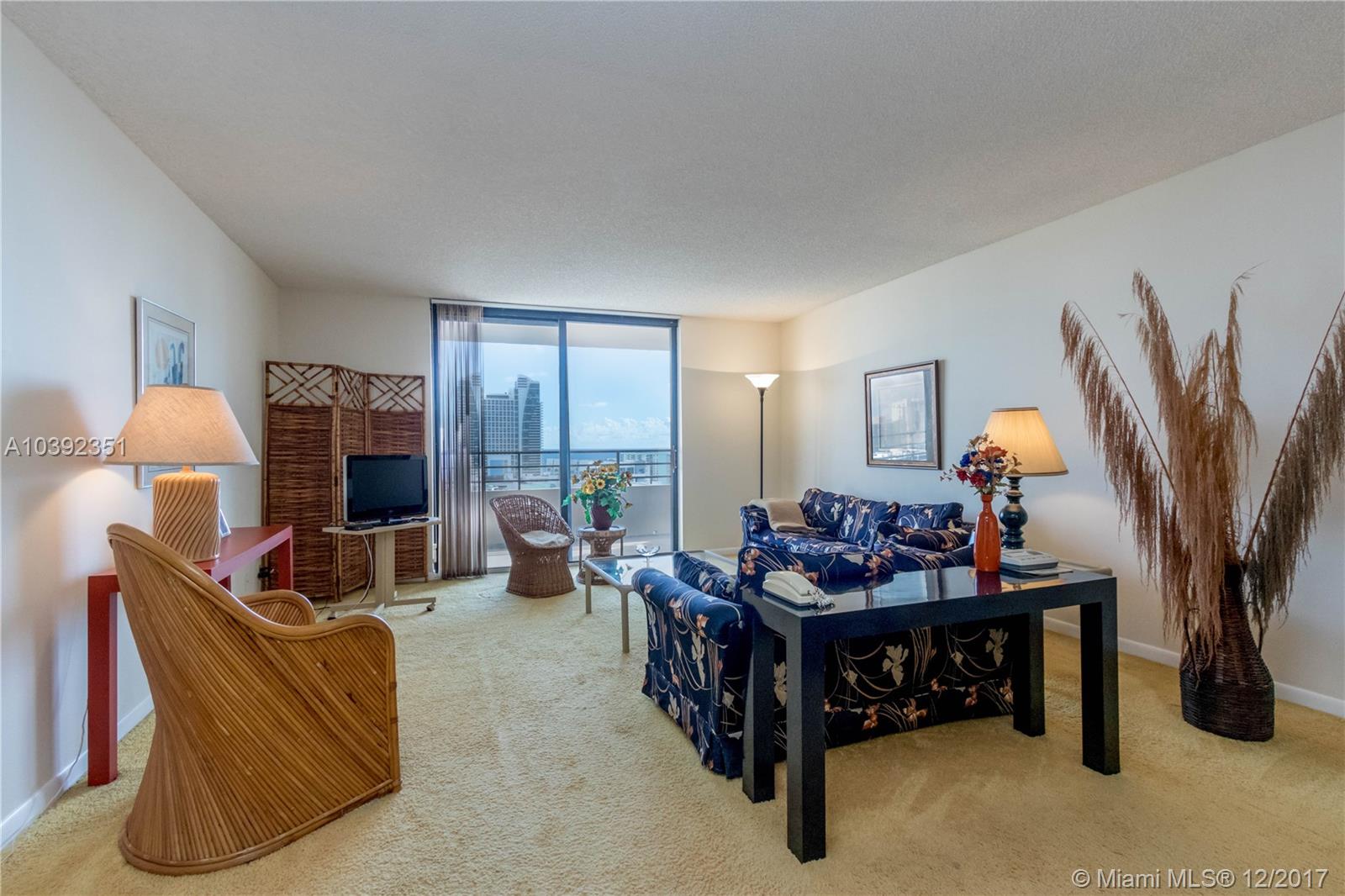 Wait till you see this ocean view from the 22nd floor! Meticulously kept 1 bedroom, 1.5 bath unit. Big bedroom with sitting area & ocean view. Living/dining room is very spacious. Beautiful open balcony overlooking the intra coastal, the bay & the ocean. See the sun come up in the morning & the city lights at night. Property has 2 heated pools, 5 tennis courts, billiards, valet, 24 hr security, garage parking, BBQ area, courtesy bus, community marina & a brand new fitness center coming. Minutes walk to shopping, dining, banks, Starbucks & the beach. Malls, casinos & sports arenas nearby. OK to lease 1 time per year. 1 Cat allowed!!!!! 20 pounds or less. 2nd parking space available for a fee.