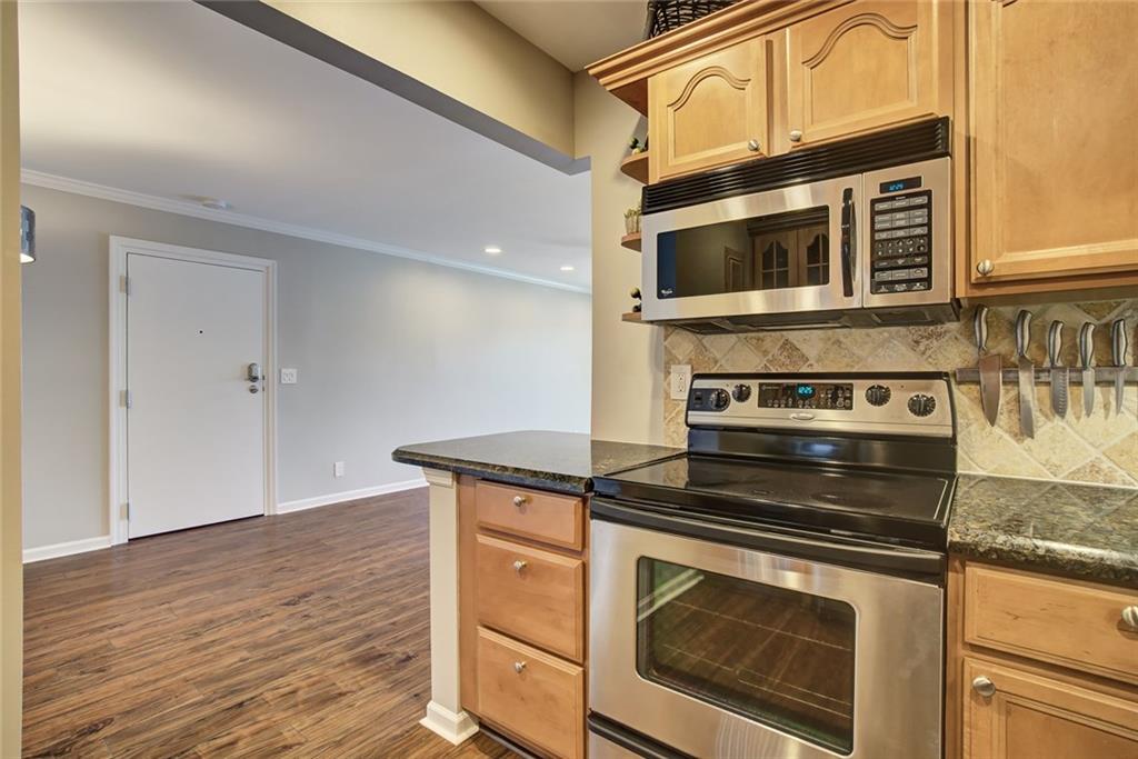 This condo has been meticulously remodeled with nothing spared. The open kitchen has granite counters, stainless appliances. The new wood floors throughout give a sleek sophisticated appearance. New A/C, water heater, popcorn removal, new washer/dryer, impact glass & doors, 2nd bedroom closure, plantation shutters etc. Just bring your personal items!