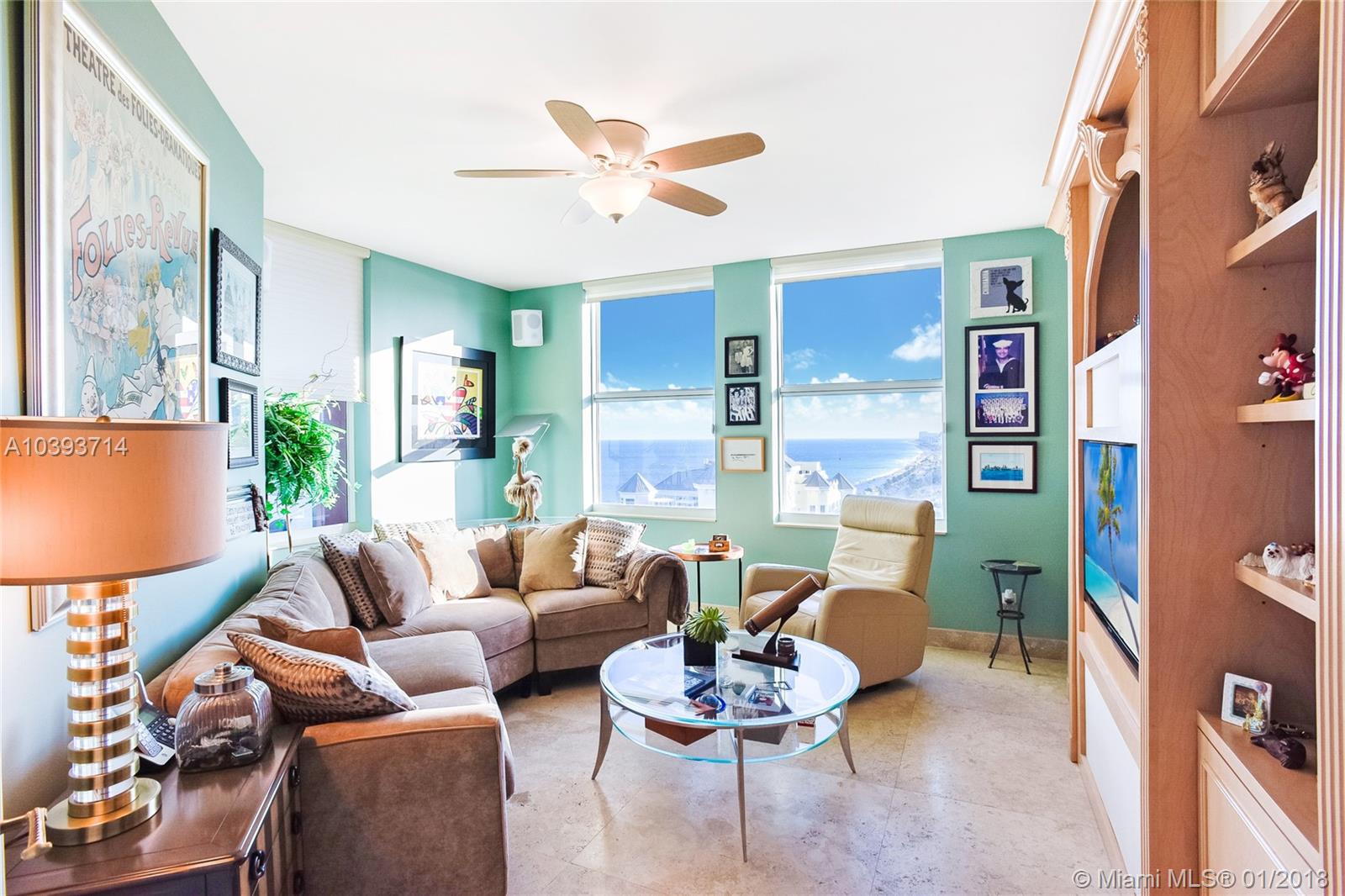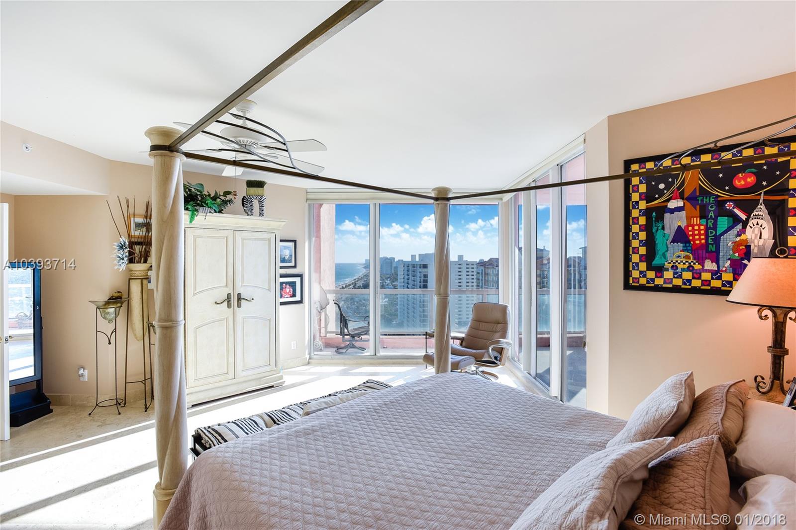 Highly desirable high floor Florence model offers spectacular and direct east and southeast ocean views, Intracoastal views, two terraces and a highly desirable oversized floor plan. Gracious living and dining room with adjacent den/3rd bedroom, oversized master suite, oversized walk-in closet, 2 new baths including new master bath with spectacular Intracoastal views, elegant marble flooring and 2 parking spaces. Enjoy five star resort amenities such as two pools, attended beach, tennis, fitness, elegant club rooms, beautifully appointed lobby, 24 hour security and valet.