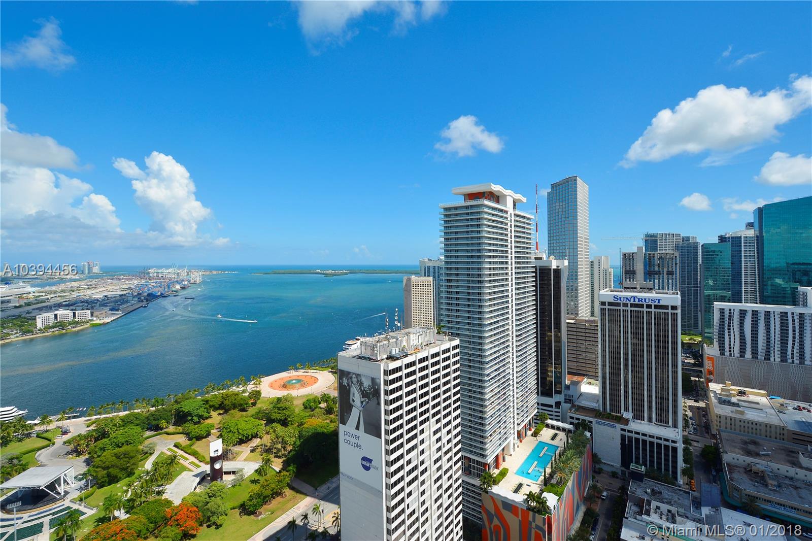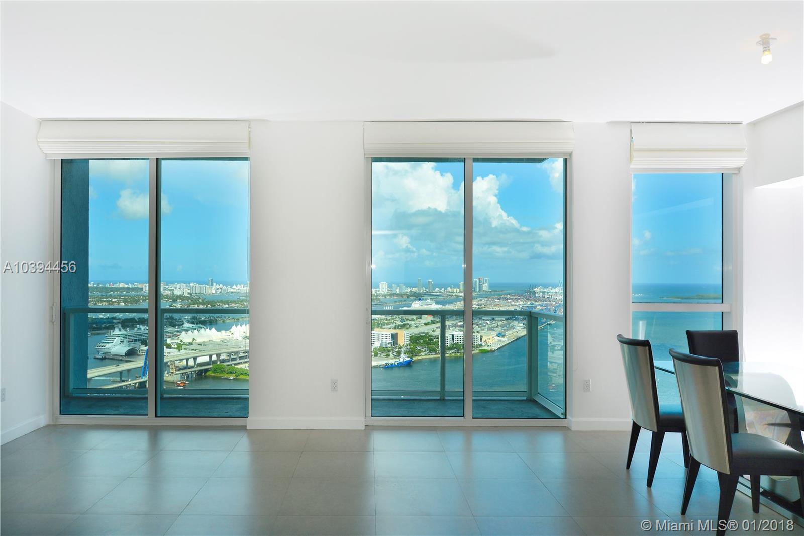 Beautiful & Large DIRECT OCEAN VIEW unit 2 beds/ 2 baths with stunning city & water views. European kitchen with stainless steel appliances. Marble baths, walking closets. Great full service building with amazing amenities. Excellent location in Downtown Miami just across the parks, AAA, shipping, fine dining and much more. Easy to show!!! Great for Investors.