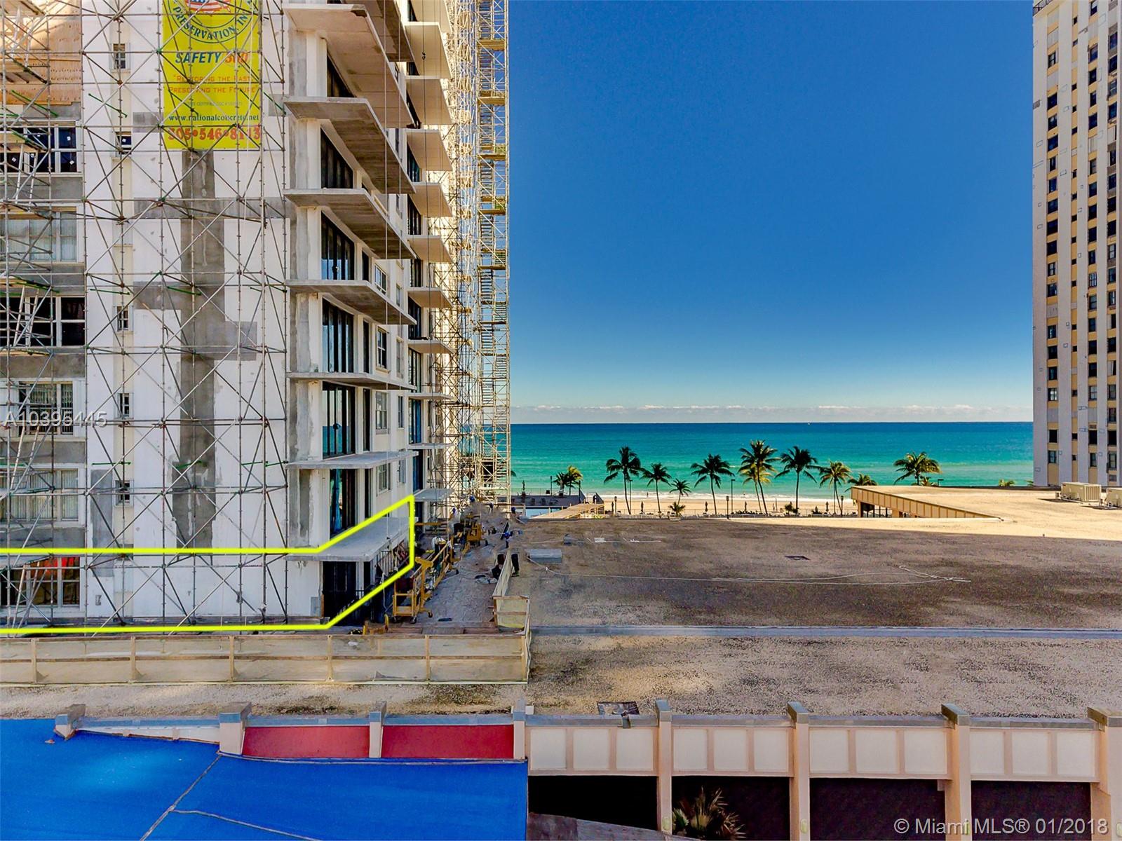 Great beach getaway at Quadomain Valencia, partially furnished, and awesome price. Priced to sell, will not last. Large 2 bedroom unit with 1,350 sqft. Tile and wood floors throughout. French doors, and one remodeled bathroom. Balcony has south exposure with a glimpse view of the ocean overlooking the lobby's roof. Balconies in the building are being redone with an expected completion time of Summer 2018. All special assessments have been paid for. Building features 2 heated pools, restaurant, sauna & steam room, valet service, security, exercise room, beauty salon, game room, and much more. 24hrs attended secured lobby. Direct beach access and walking distance to Hollywood Beach Broadwalk. Call today before is gone. See attachments for a list of the personal excluded items from the sale.