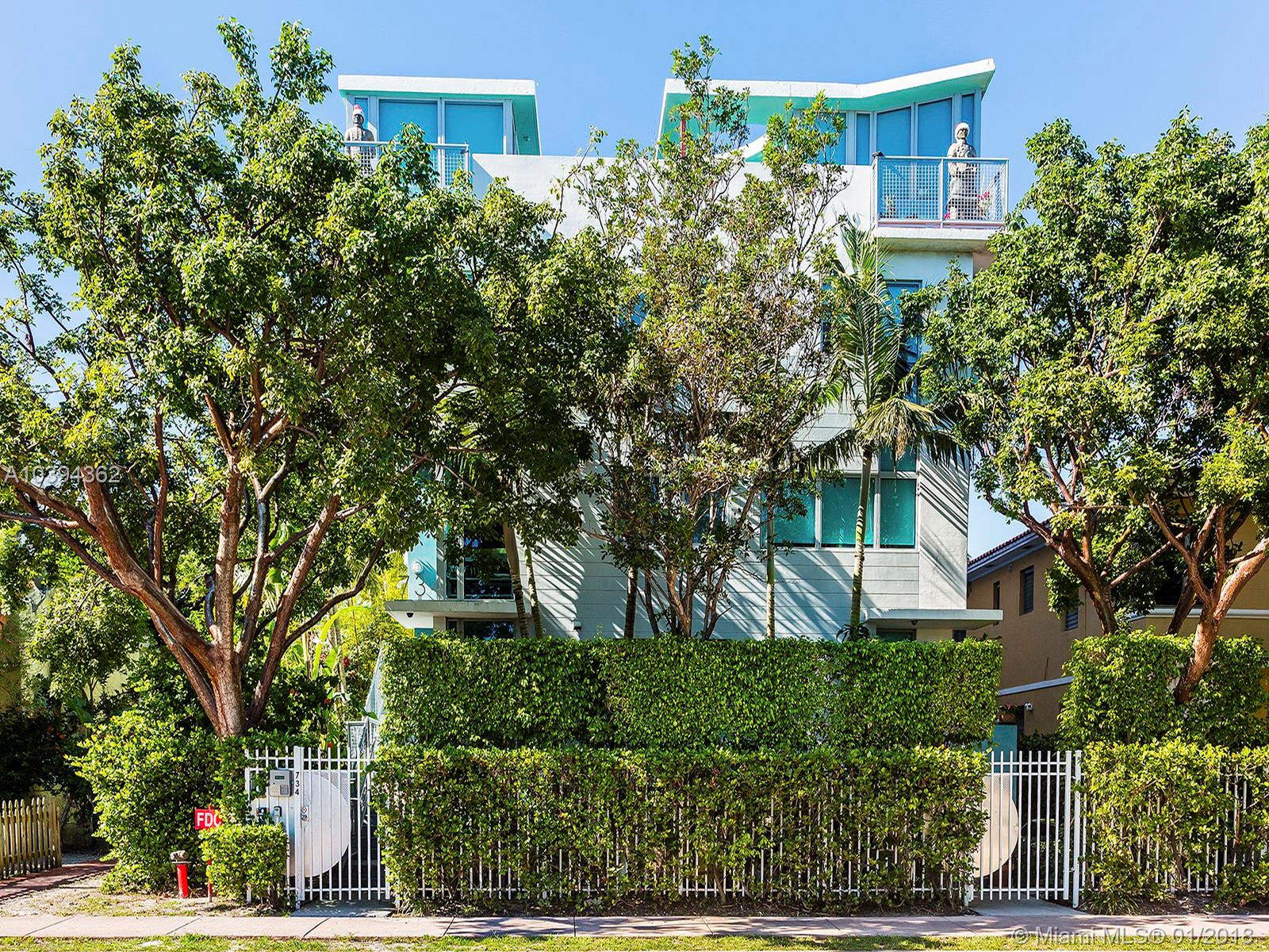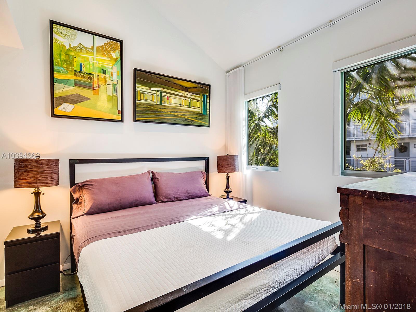 Miami living at its best. Walking distance to most everything in South Beach yet a private and quiet community. This is a small boutique building only 7 townhomes, new in 2007. Loft style with a very garden feel, this unit is beautiful. Impact windows, 1/2 bath downstairs and each of the 2 bedrooms have their own bath. Rooftop terrace to enjoy the afternoon shade and stargaze at night. Just turn the key and you are home.