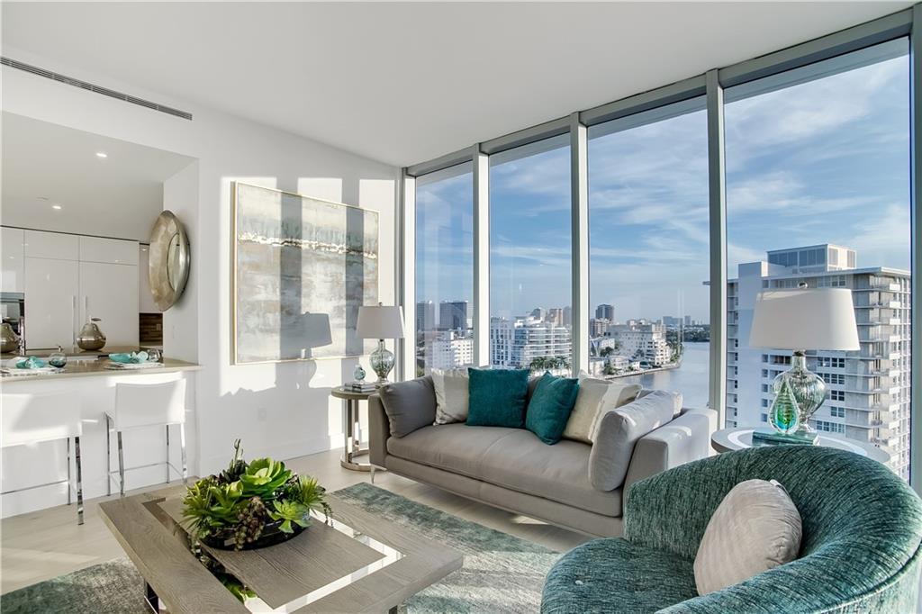 AQUABLU NEW CONSTRUCTION CONDOMINIUM ON THE INTRACOASTAL WATERWAY, CONTEMPORARY DESIGN. UNOBSTRUCTED VIEWS OF THE OCEAN, INTRACOASTAL & CITY SKYLINE, 3 BR, 3.5 BA, GREAT RM, FAMILY RM, 10' CEILINGS, CULINARY KITCHEN: WOLF & SUBZERO APPLIANCES (INDUCTION COOKTOP), 2 OVERSIZED BALCONIES W/SUMMER KITCHEN, FURNITURE READY, FITNESS CENTER, CHLORINATED SALT WATER HEATED POOL, DOCKAGE AVAILABLE, VALET & CONCIERGE. WALK TO THE BEACH, SHOPS & RESTAURANTS. SQ FT FROM DEVELOPER BELIEVED ACCURATE NOT VERIFIED .