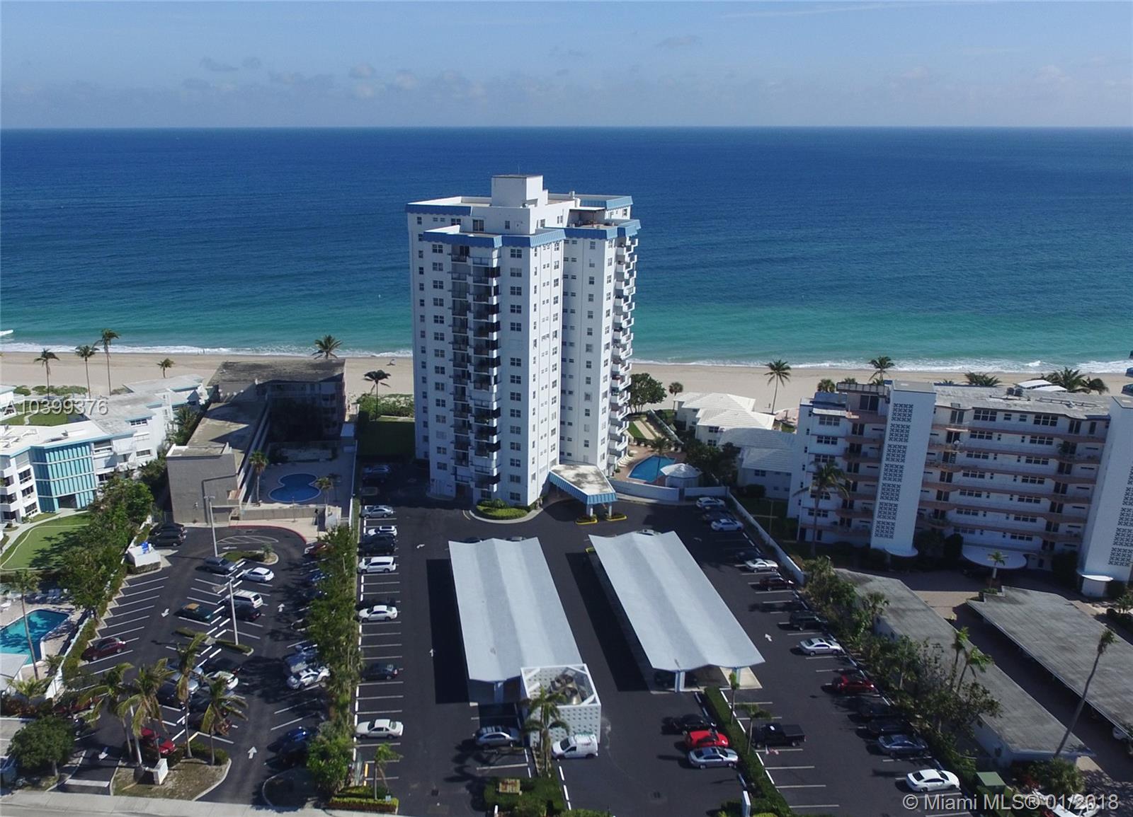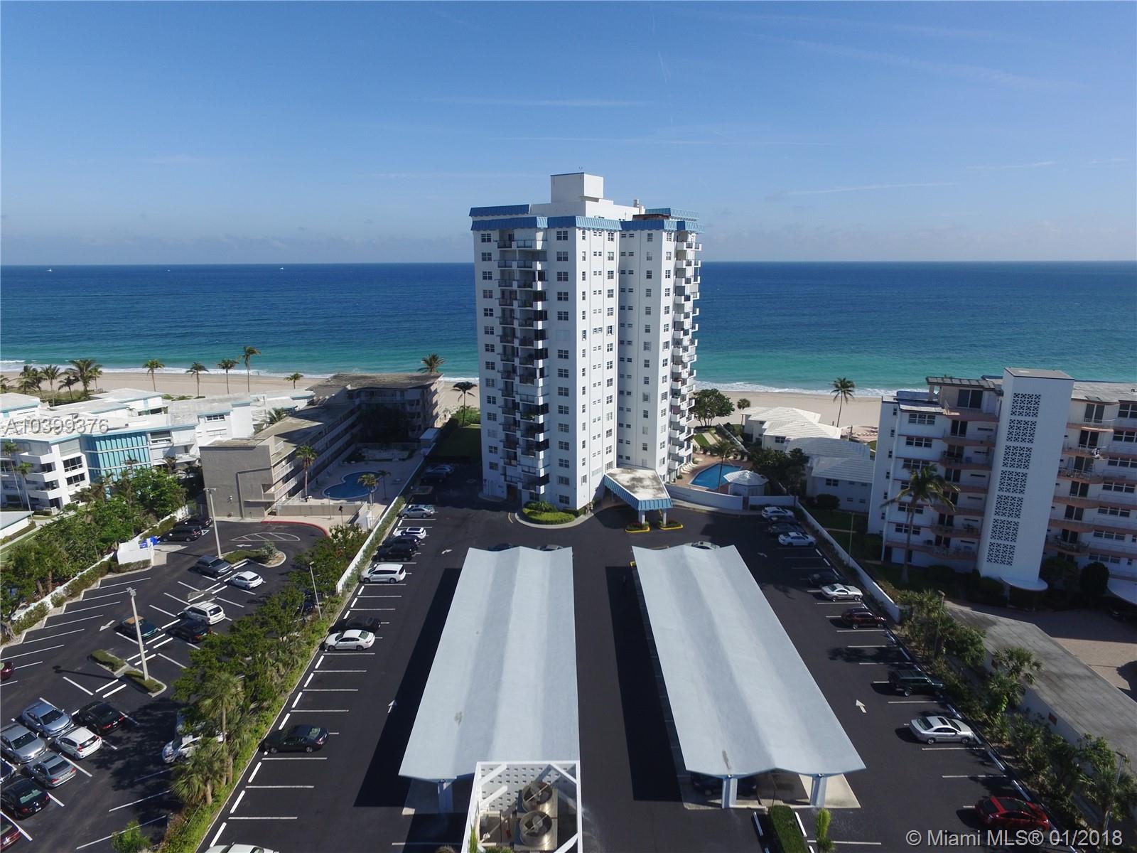 Bright and clean remodeled 9th floor corner unit. 1 Bedroom 1.5 Bath with southeast coastline views. Open kitchen with tile throughout. Furnished unit with a Murphy bed in living room. Washer and dryer in unit, storage closet on same floor. Open balcony and hurricane shutters. Assigned carport parking, secure building with key pod entrance. Well maintained building with a lobby, club room, patio with barbeque area and heated pool.