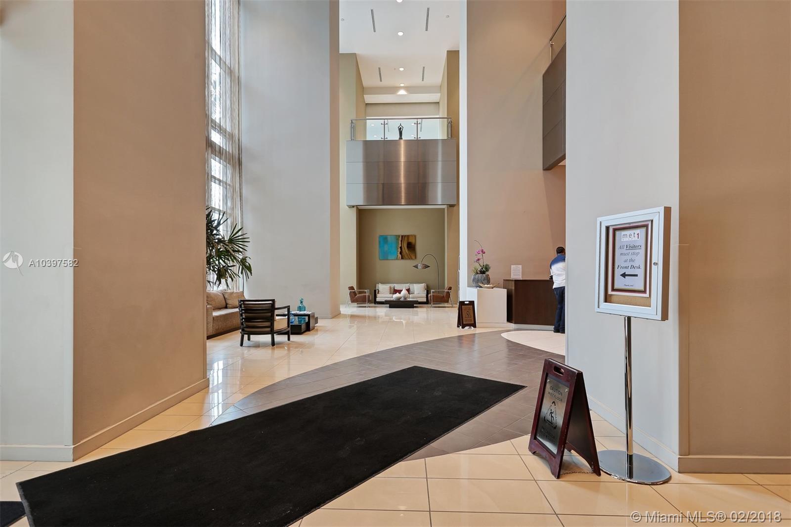 Met One Condo fully furnished, turnkey in Downtown Miami meets Brickell Avenue with waterviews on the 15th floor with balcony in move-in condition! Split bedrooms, walk-in closets, stainless steel appliances, ceiling fans, carpet floors, kitchen floor is a Brazilian mahogany hardwood, marble flooring in master bathroom, tile flooring in 2nd bathroom and balcony, granite counters, balcony, impact windows, new Carrier 2017 heating/ AC unit , 2016 upscaled Bosch washer & dryer(large drum) inside unit , furnished and ready to go, high ceilings, enjoy building amenities: pool, gym, business center, concierge, pary room and valet. Covered parking space # 611. Walk to shopping & dining or hop on the metro mover!
