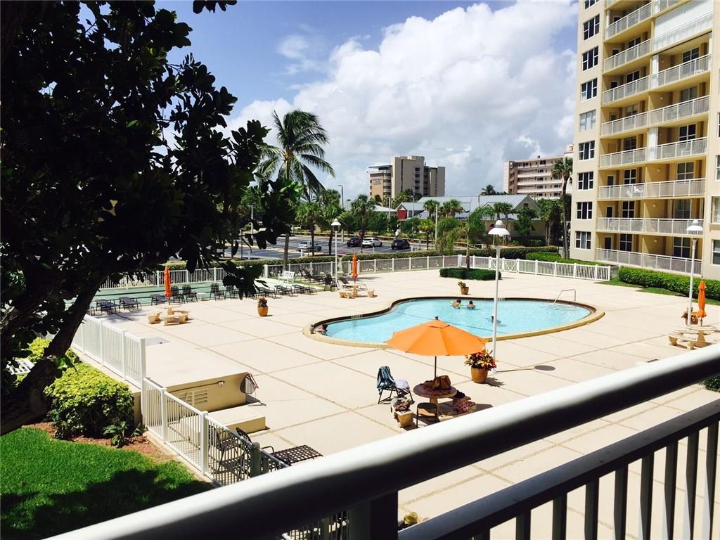 Affordable beach area living! Great Pompano Beach location walk to restaurants shops and just steps away from the ocean. This corner unit is move-in ready with tile flooring throughout UPDATED kitchen and bathrooms IMPACT windows and shutters in the balcony AC unit replaced in 2017 oversized balcony with tranquil pool and garden views. BEST PRICE BY THE BEACH. Reasonable offers will be considered. 2 year rental restriction.