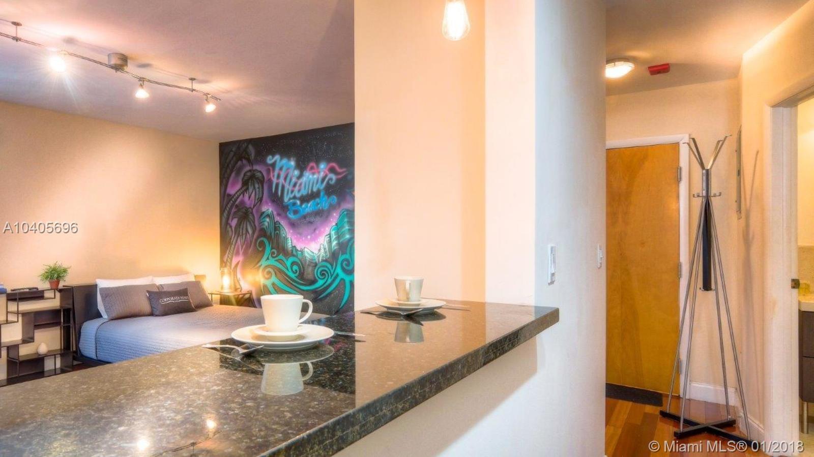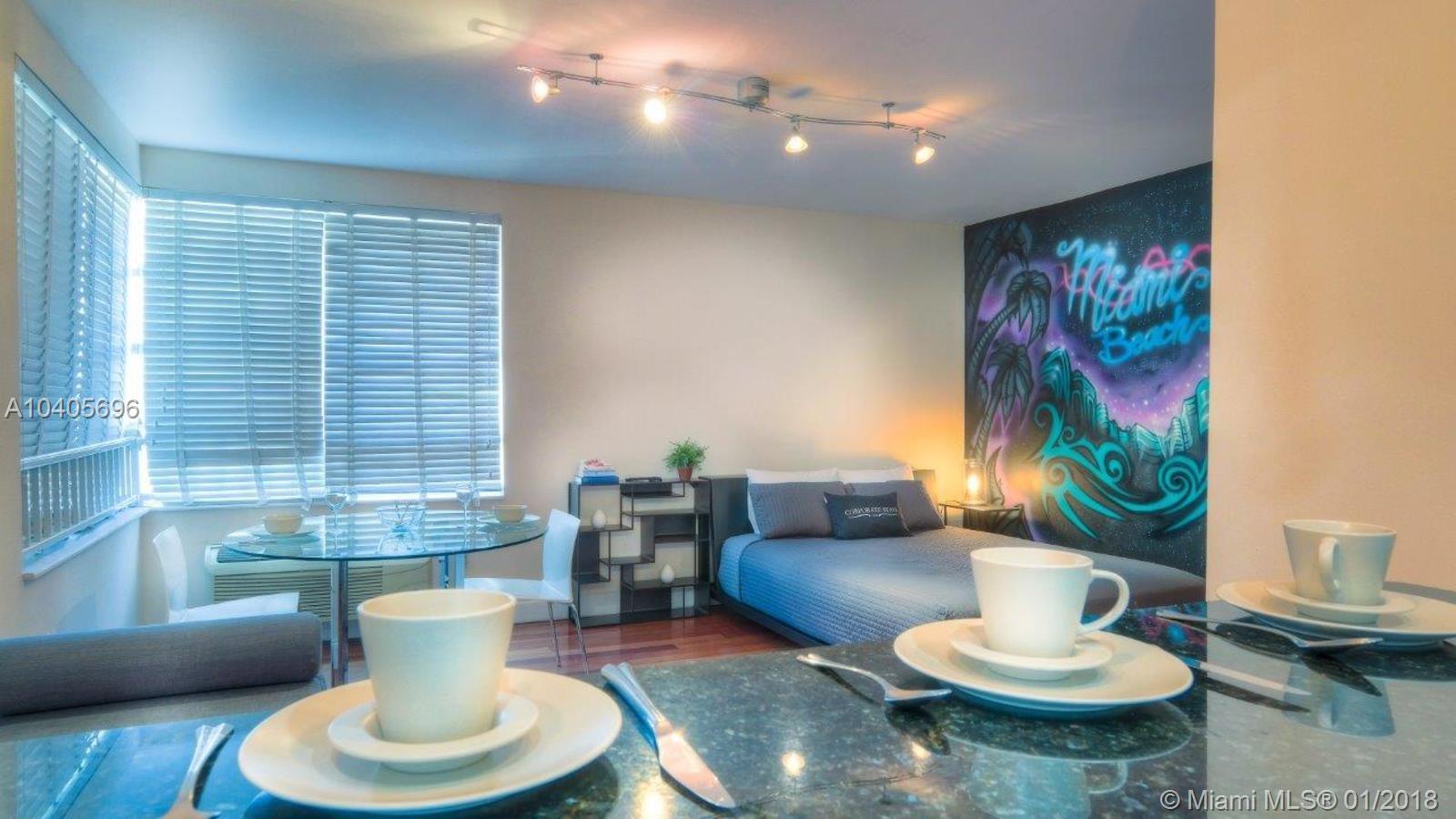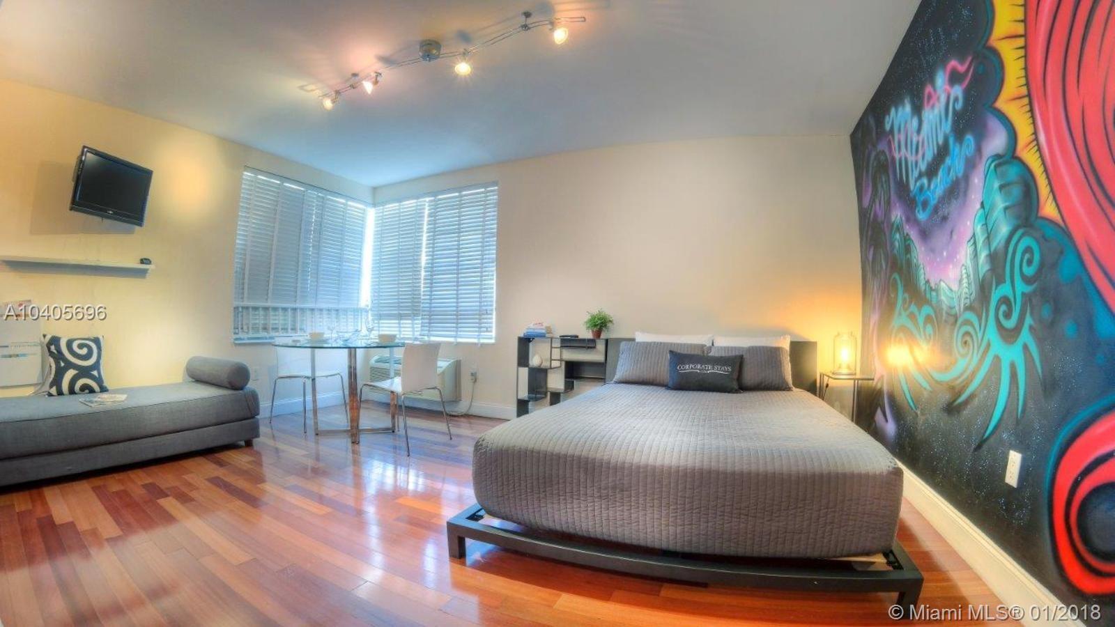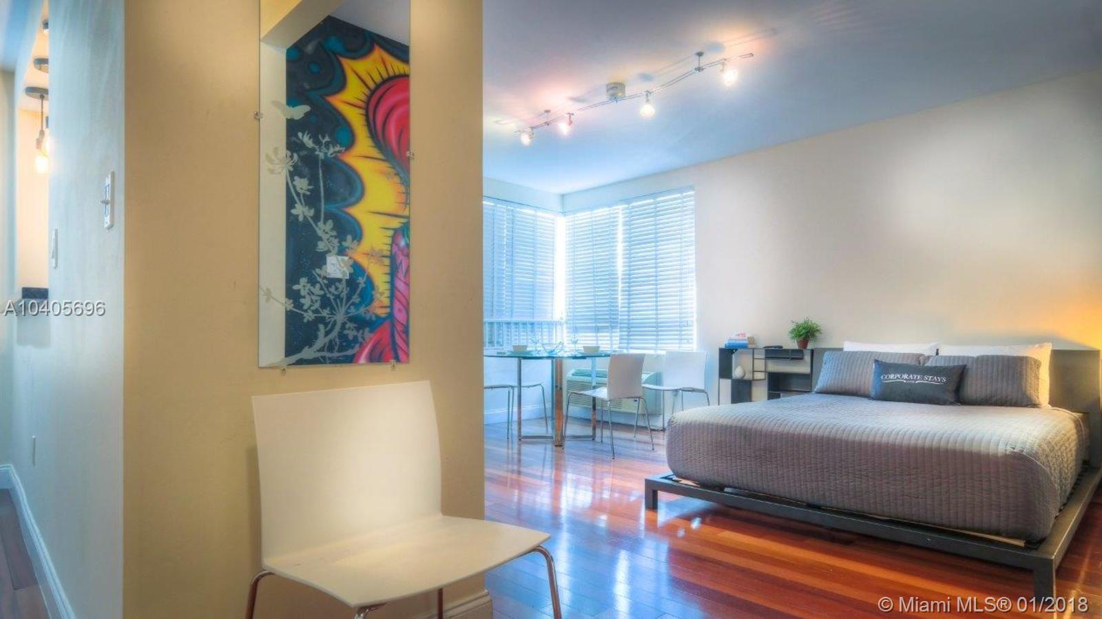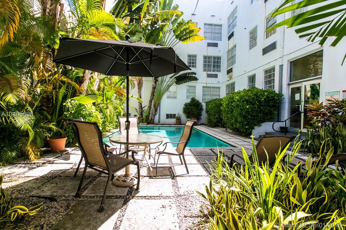 Fully Furnished and Turnkey art deco studio in heart of south beach features tropical courtyard with private pool! Steps away from the beach, Ocean drive, Lincoln road & Espanola way. Unit features brazilian cherry wood floors, marble and granite kitchen. Laundry room in the building. Great for investors ! No rental restrictions, can be rented daily or weekly as per City and by-laws.