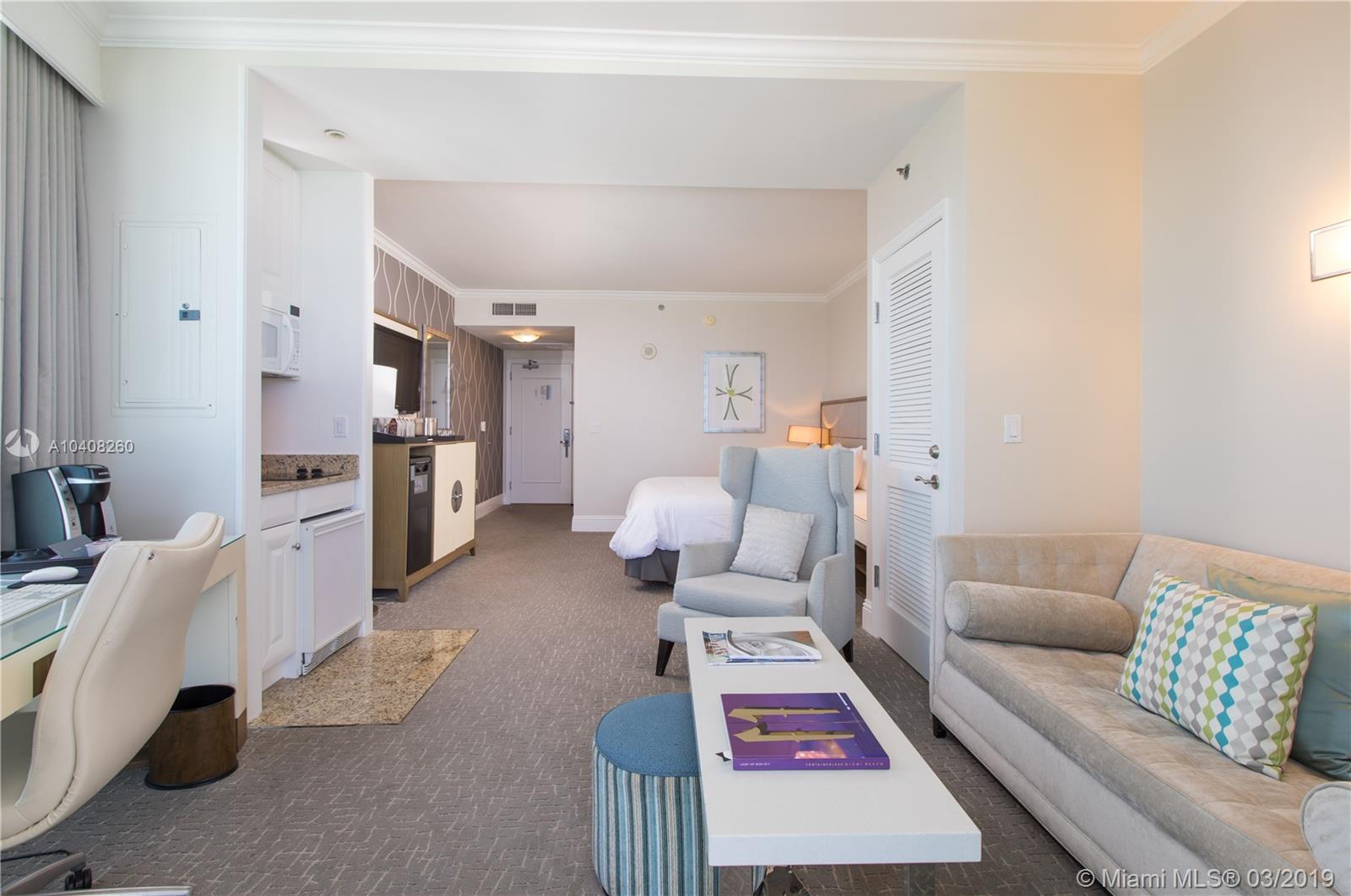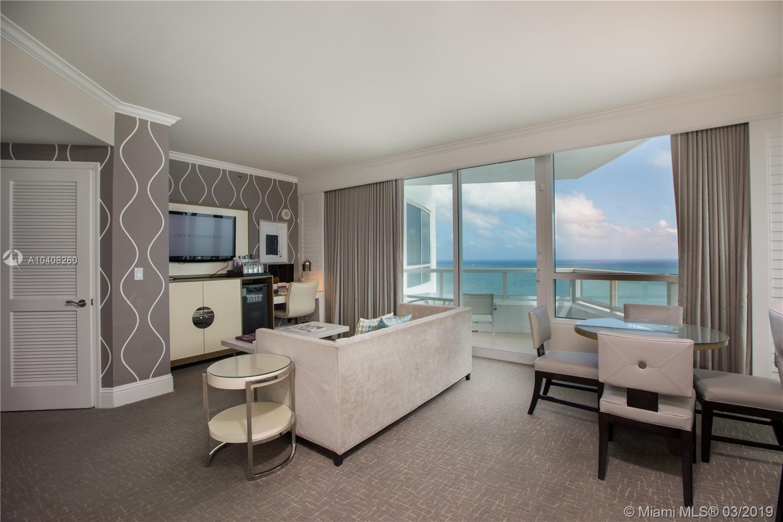 THIS FABULOUS CORNER TWO BEDROOM UNIT WITH PRIVATE ENTRANCE IS BEING OFFERED AT THE TRESSOR IN THE FONTAINEBLEAU HOTEL. ENJOY RESORT LIVING EITHER FULL OR PART TIME. FABULOUS INCOME PROD. PROPERTY. DIRECT OCEAN VIEWS, & VIEWS OF MIAMI BEACH, THREE PRIVATE BALCONIES, FULLY FURNISHED, A FULL KITCHEN IN ONE OF THE UNITS, OWNER HAS FULL USAGE OF THE FONTAINEBLEAU AMENITIES WITH DISCOUNTS AT THE WORLD RENOWNED LAPIS SPA, 40,000 SF STATE OF THE ART SPA & FITNESS CENTER, DAILY COMPLIMENTARY BREAKFAST FOR OWNERS, COMP. VALET PARKING. ENJOY FABULOUS RESTAURANTS WITH MUCH MORE!