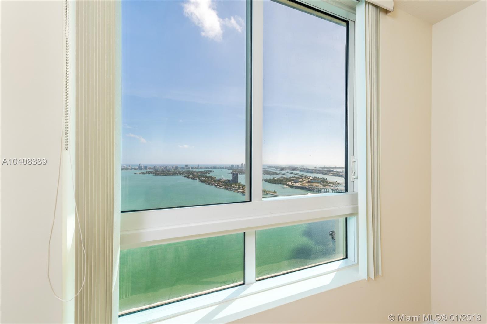 Exquisite 2 Bed/2.5 Bath+Den corner unit in the beautiful Quantum on the Bay. Enjoy breathtaking, unobstructed, 48th floor's views of Biscayne Bay and Downtown Miami from your wraparound balcony. Unit features great kitchen w/ cooking island, stainless steel appliances, granite counters, floor to ceiling windows & ceramic floors throughout. Building amenities include: 2 heated pools, 2 story gym w/ classes available, theater room, business center, party room, billiard, sauna, jacuzzi, valet, full concierge & 24 hour security. Great location! Adjacent to Margaret Pace Park, blocks from Downtown, Wynwood and Design District, minutes to Brickell and South Beach, easy access to 95. Your chance to live in the most desirable waterfront property in Edgewater!