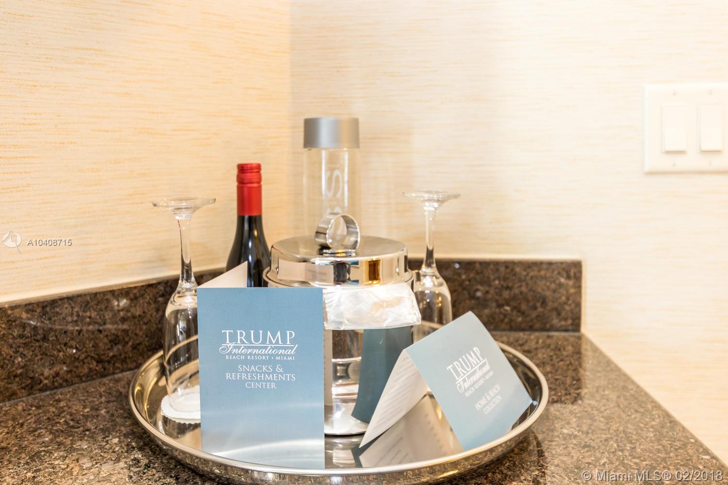 Beautiful Condo with Ocean and City Views at Trump International Beach Resort, Sunny Isles Beach!Unit is a Deluxe Studio featuring two Queen Beds, kitchenette, large bathroom with tub and shower, and beautiful balcony THE BEST PRICE IN THE BUILDING! LUXURY RESORT LIFE STYLE includes Spa, Beauty Salon, Maid service, Valet Parking, Children Daycare, 4 Restaurants, Tennis Court, Cabanas, Full Beach and Pool Service, Fully Furnished, Walking Distance to the Grocery Stores and Shopping! GREAT INVESTMENT to Live While You Are in Town and RENT it While You away. Bring the Offers!