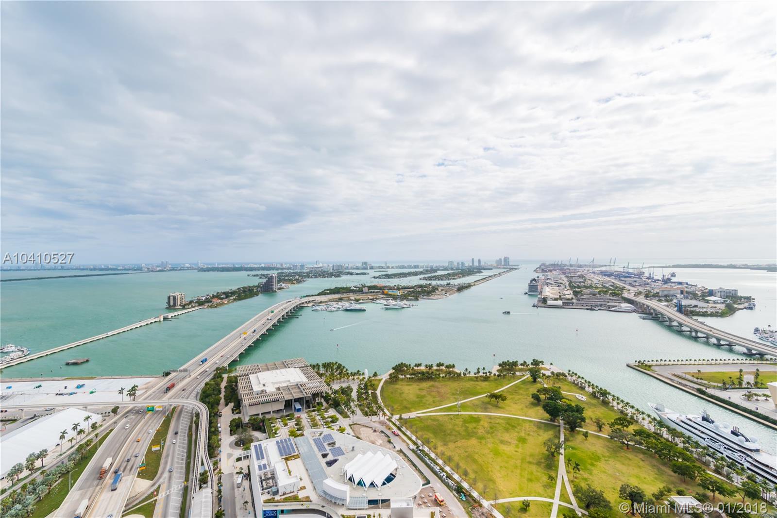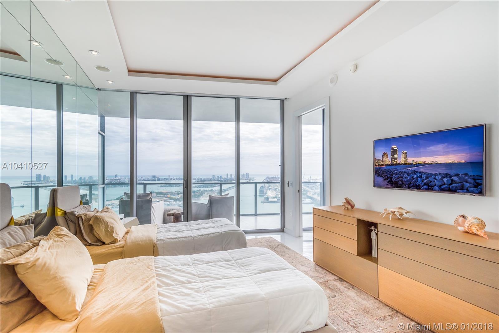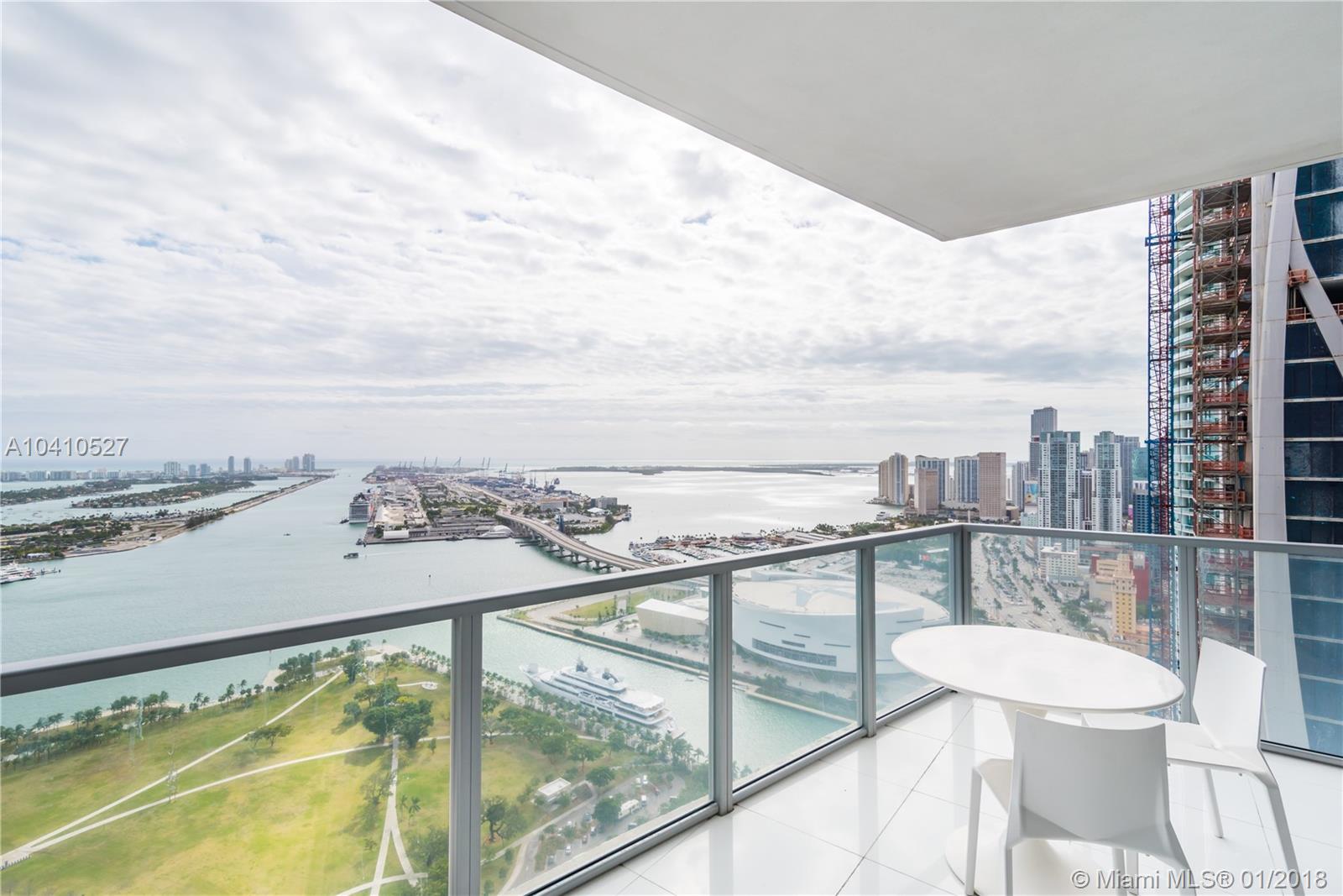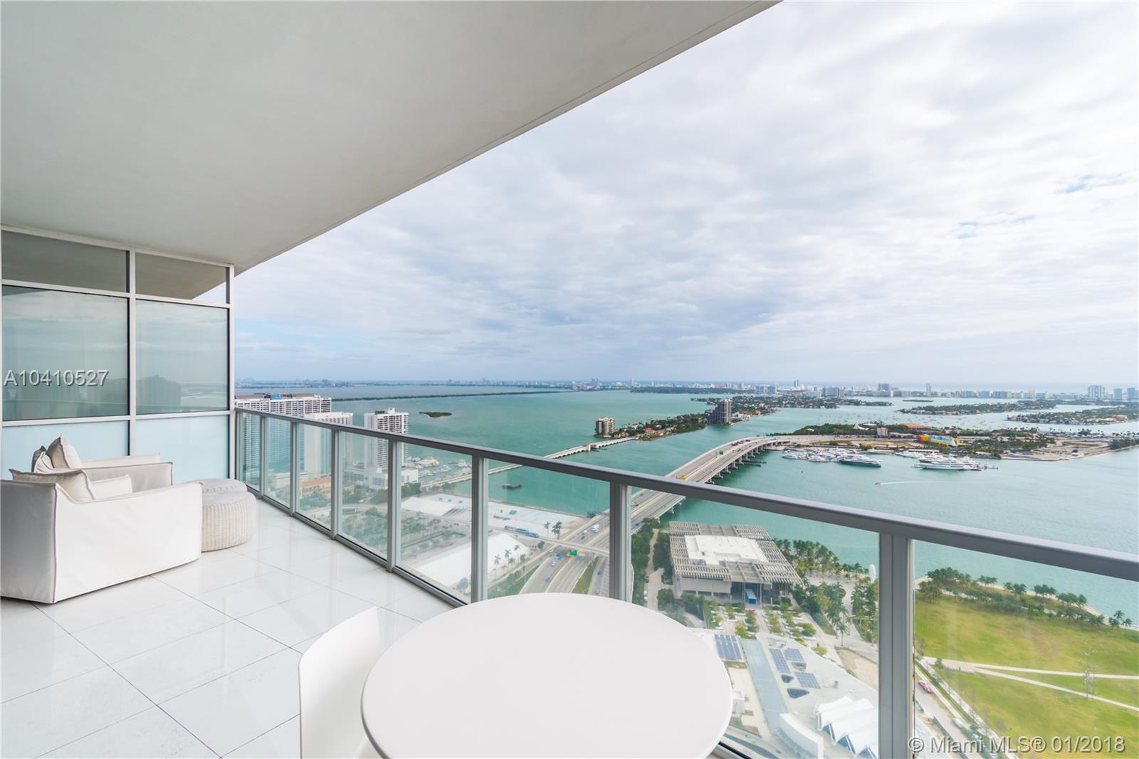 Spectacular water views in every direction await you from the least expensive 01 unit residence at Marquis Miami. This sky home boasts 2,106 sq.ft. with 3bd/ 2.5 ba. w/ two Private Elevators that open directly into this remarkable SE corner unit. Impeccably finished w/ white glass flooring throughout, outfitted w/ the Control 4 system in every room to control lights and sound, upgraded tray lighting in living room and master suite, motorized shades in every room and much more. Live in the heart of Miami’s cultural center across from the PAMM, Frost Science Museum, American Airlines Arena and beautiful Museum Park. At $567 a sq.ft. unit 4501 is the deal you have been waiting for on a high floor at Marquis.