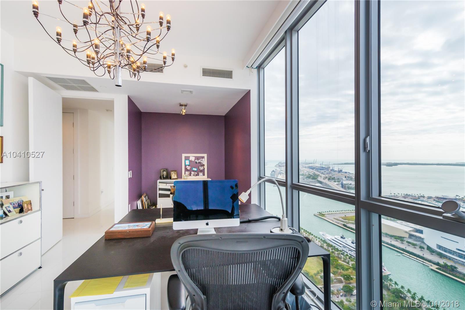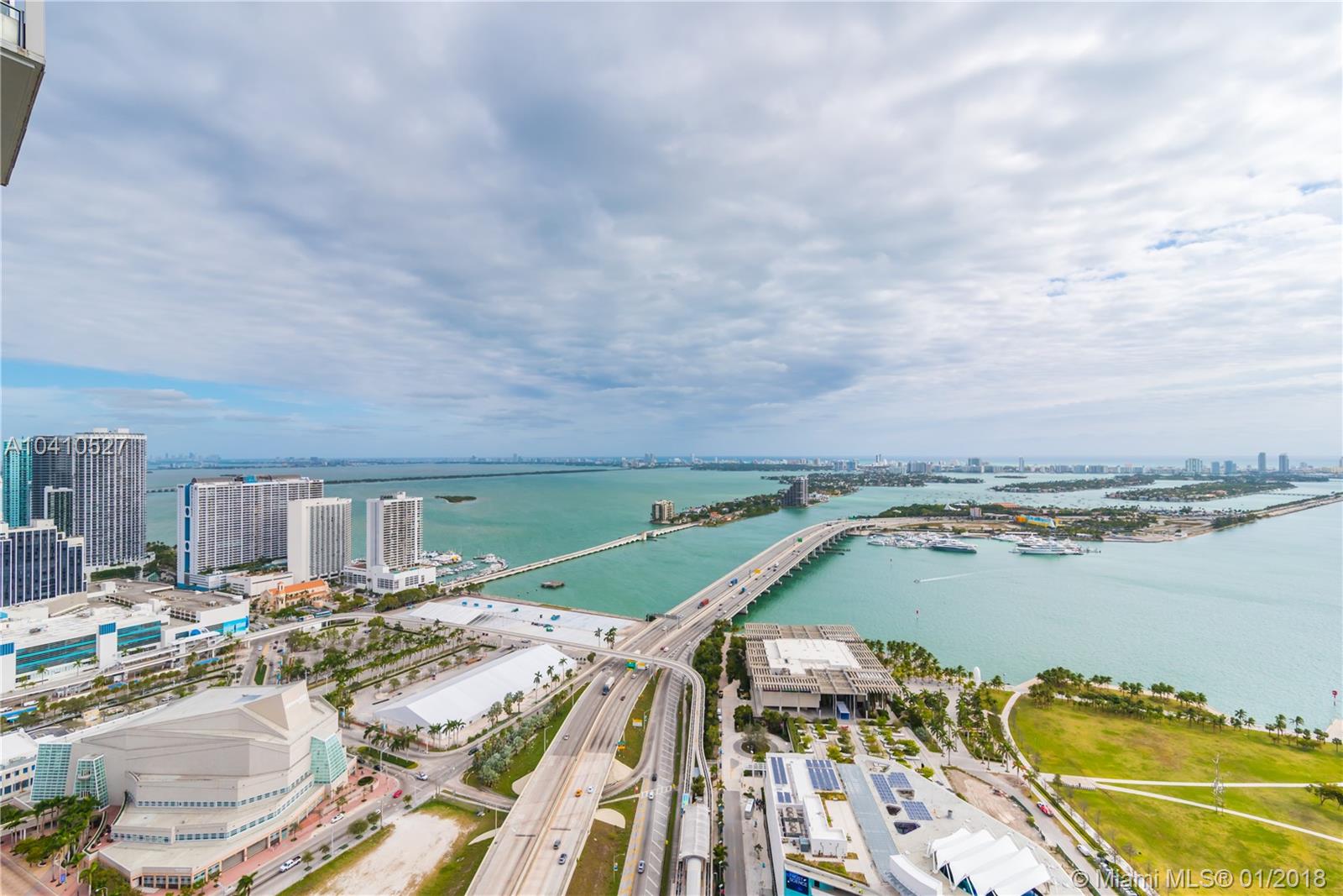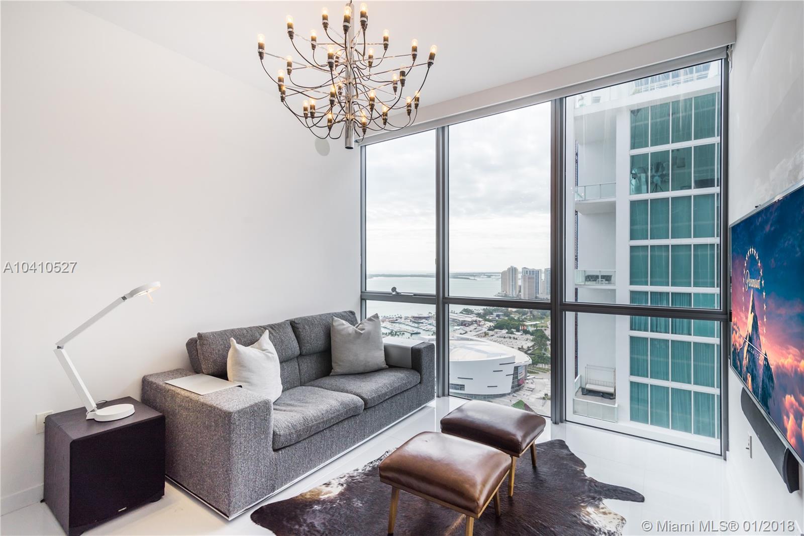 Spectacular water views in every direction await you from the least expensive 01 unit residence at Marquis Miami. This sky home boasts 2,106 sq.ft. with 3bd/ 2.5 ba. w/ two Private Elevators that open directly into this remarkable SE corner unit. Impeccably finished w/ white glass flooring throughout, outfitted w/ the Control 4 system in every room to control lights and sound, upgraded tray lighting in living room and master suite, motorized shades in every room and much more. Live in the heart of Miami’s cultural center across from the PAMM, Frost Science Museum, American Airlines Arena and beautiful Museum Park. At $567 a sq.ft. unit 4501 is the deal you have been waiting for on a high floor at Marquis.