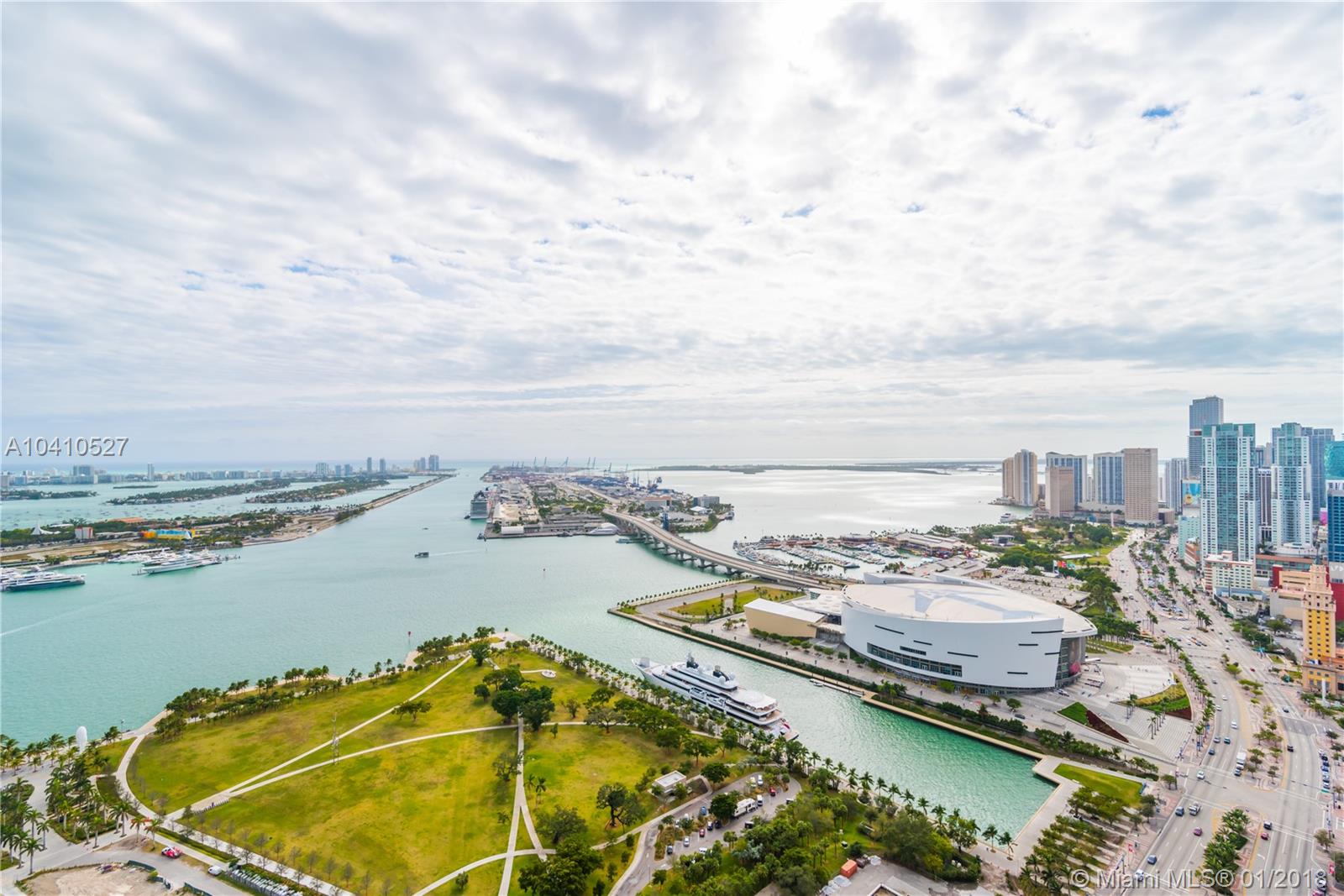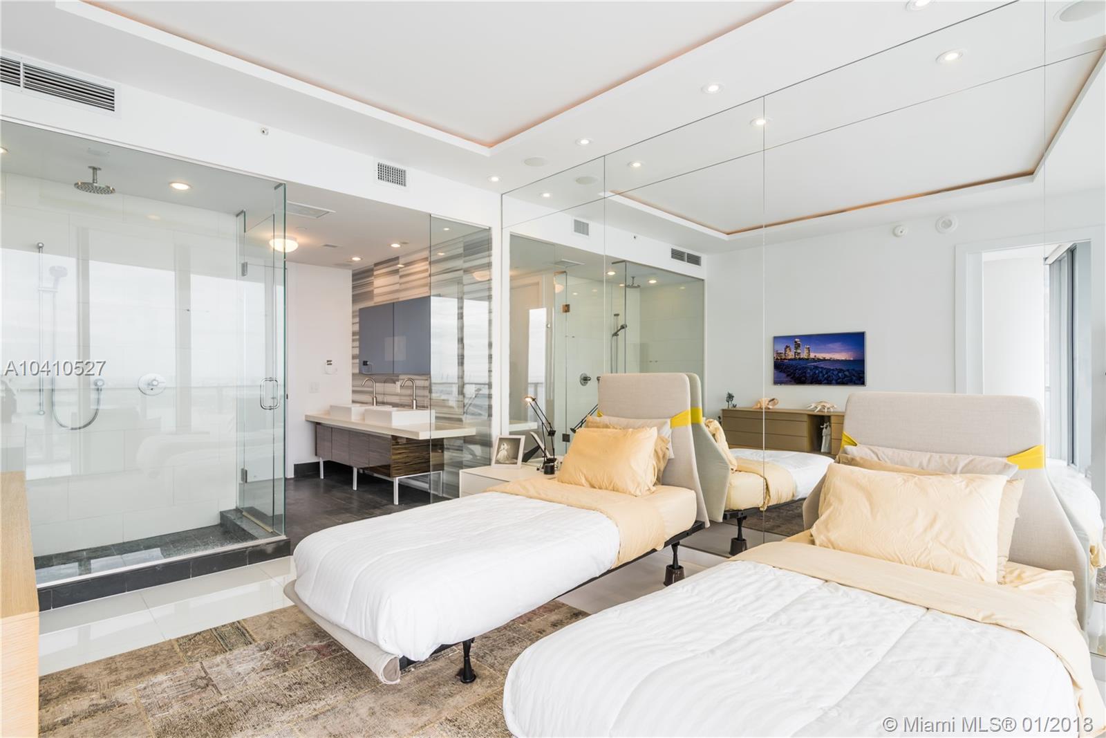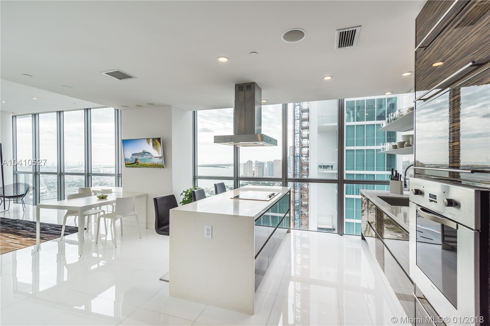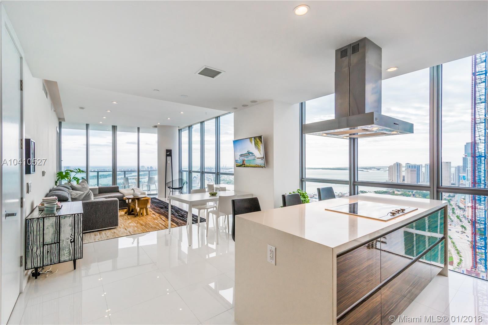 Spectacular water views in every direction await you from the least expensive 01 unit residence at Marquis Miami. This sky home boasts 2,106 sq.ft. with 3bd/ 2.5 ba. w/ two Private Elevators that open directly into this remarkable SE corner unit. Impeccably finished w/ white glass flooring throughout, outfitted w/ the Control 4 system in every room to control lights and sound, upgraded tray lighting in living room and master suite, motorized shades in every room and much more. Live in the heart of Miami’s cultural center across from the PAMM, Frost Science Museum, American Airlines Arena and beautiful Museum Park. At $567 a sq.ft. unit 4501 is the deal you have been waiting for on a high floor at Marquis.