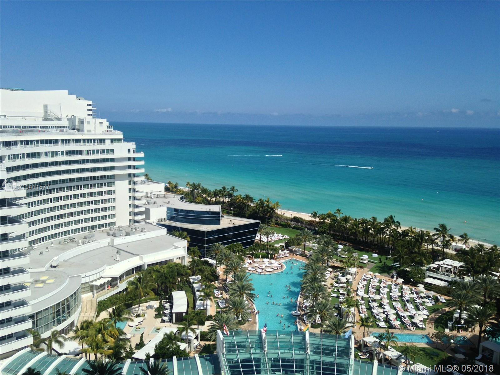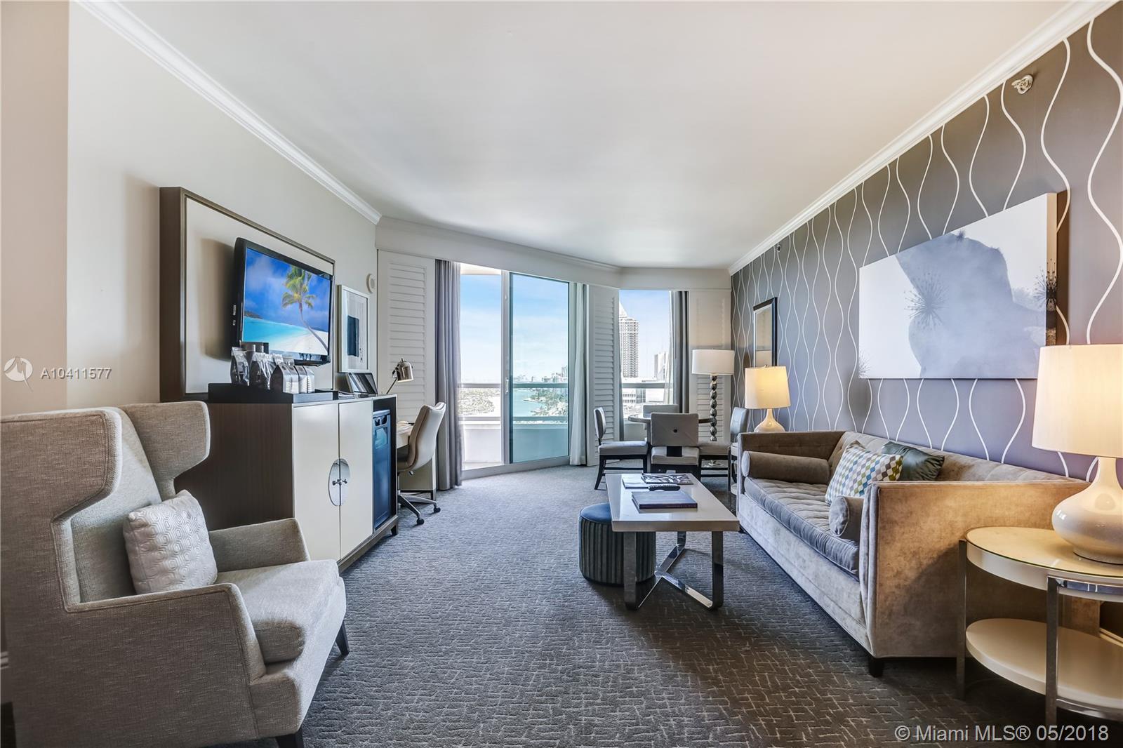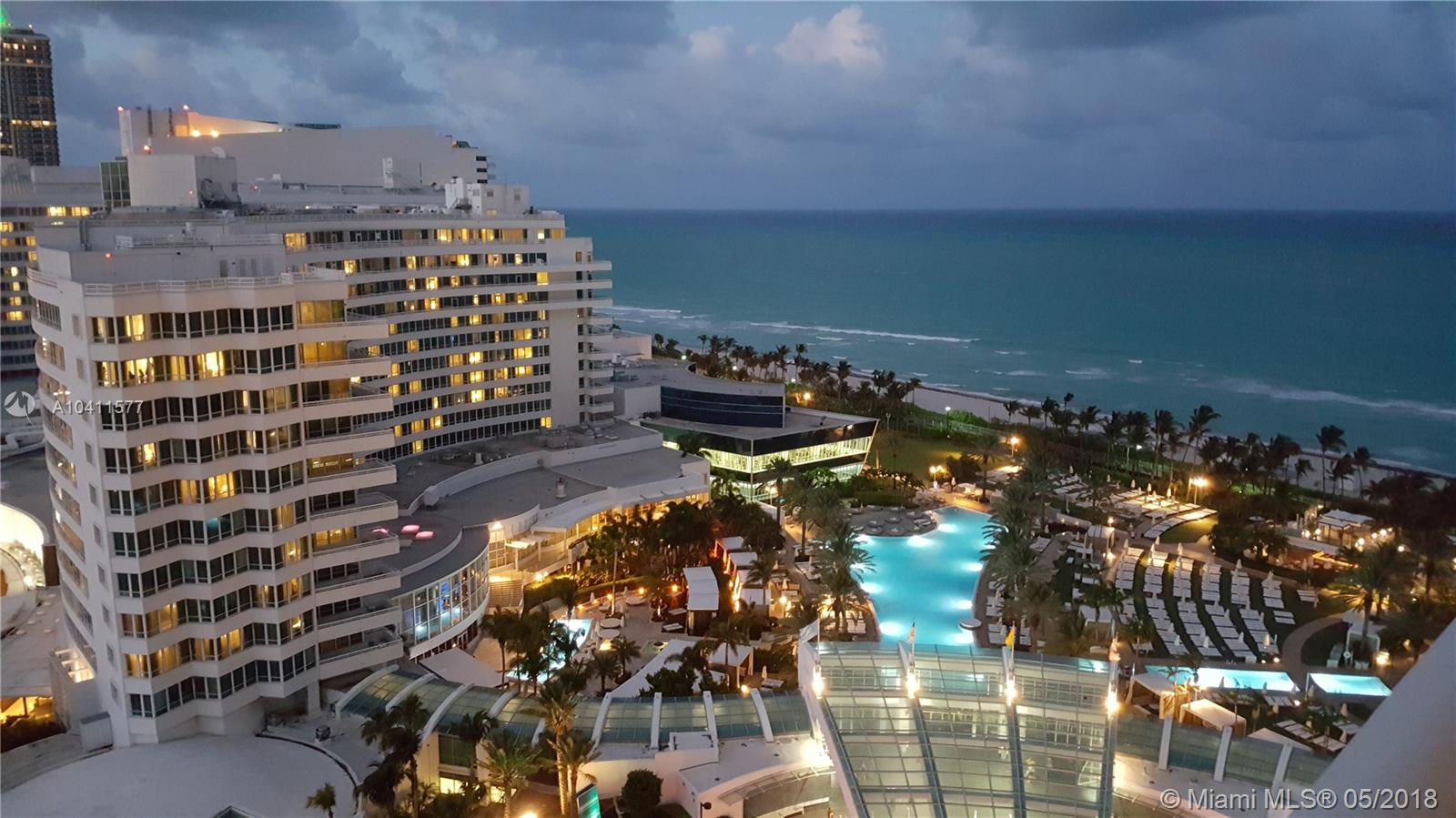 Beautiful 1BD/2BA w/ocean, bay views at Fontainebleau II. Enjoy full service, vacation-style living in a furnished unit with king bed, sleeper sofa, W/D & more. Enroll in hotel rental program & receive income while away! The Fontainebleau Resort offers luxury amenities on 22 oceanfront acres including award-winning restaurants, LIV night club, Lapis spa & state-of-the-art fitness center. Maintenance includes: AC, local calls, electricity, valet + daily free breakfast in the owner’s lounge
