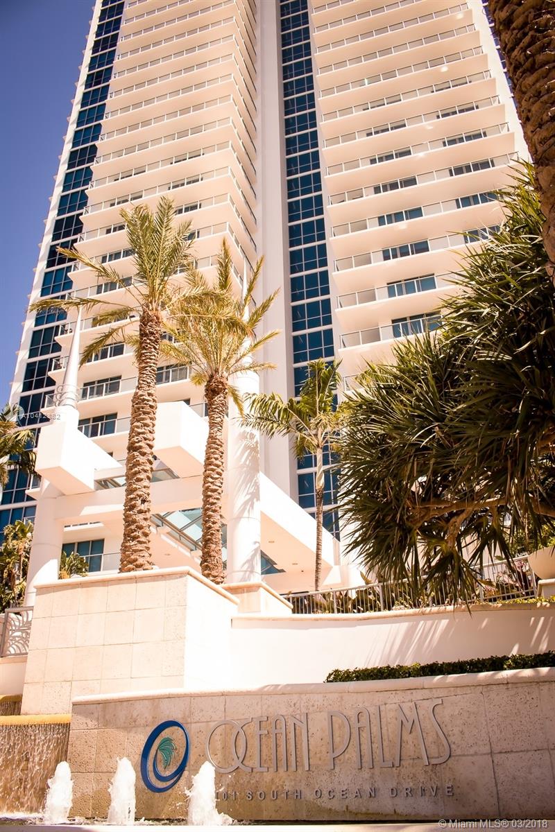 REDUCED ! BEST PRICE IN CONDO !! This 3 BR, 3.5 BA apartment is located in Hollywood Beachfront in the prestigious - Ocean Palms. The apartment features spectacular ocean views, high ceilings, ample closet space, marble bathrooms, high-end appliances, marble floors, contemporary lighting, custom cabinetry and closets. Private elevator entrance to the apartment. Ocean Palms has state of the art gym, full service lobby with valet, full service pool and beach, basketball court, media and business centers, screening room, conference rooms.