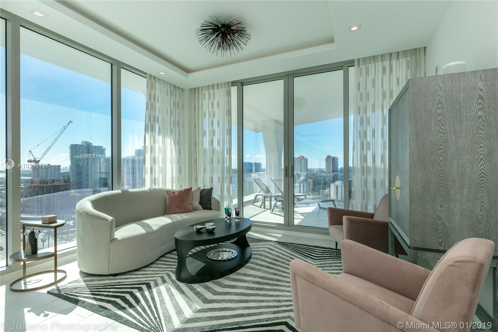 Appointed with the finest finishes and furnished with luxury and contemporary pieces by Artefacto and other Italian design brands, this plush residence is ready for move-in! Jade Signature is designed by Pritzker-prize-wining Swiss architect, Herzog and de Meuron with interiors by world-renown, Pierre Yves Rochon of Paris. This spacious corner residence features 4 bedrooms (convertible 5th bed) in addition to a family room and den. A glass jewel box, enjoy uninterrupted ocean views with glimmering skyline vistas, framed by floor-to-ceiling windows and appointed with 5 terraces. Hermes furnishings and accents adorn the common areas. Amenities feature on-sight dining, Tata-Harper spa, salon and water therapy; fitness facilities, yoga, pilates/spin studios and more.
