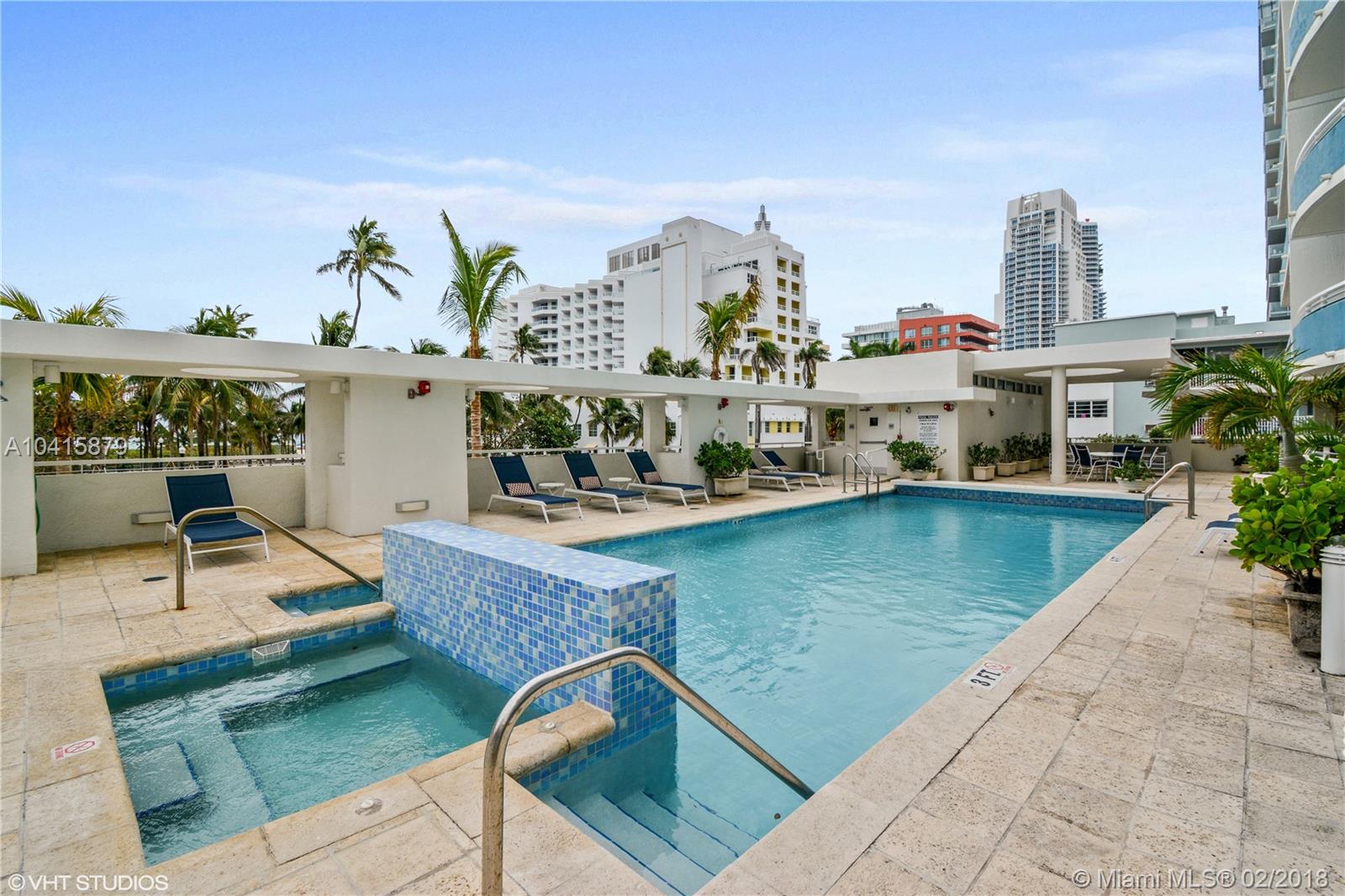 Magnificent direct ocean views with private wrap-around balcony from this 8th floor, 2 bed, 2 bath, 1,350 SF apartment on World Famous Ocean Drive. Elegant interior with new hurricane impact doors & windows, designer kitchen & baths, his & her closets, & travertine marble floors. Boutique 20 unit building features ocean front pool & spa, fitness center, secure lobby, & parking. World class dining, shopping, entertainment, & brilliant beaches are steps away. Easy to show.