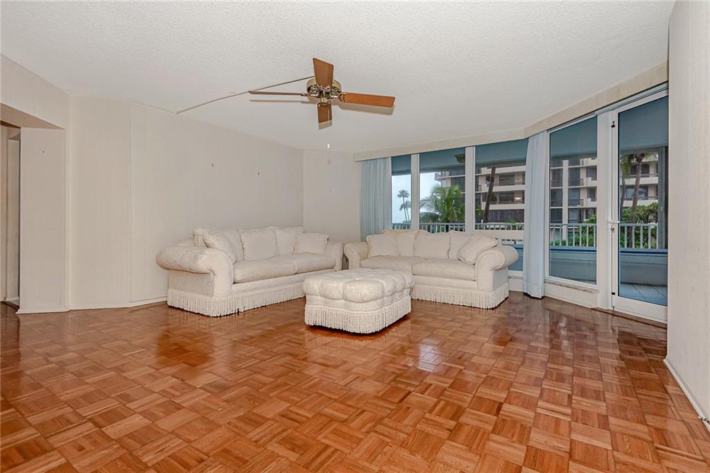Low floor, feels like you're literally living on the beach !! Watch and hear the surf as it washes the white sand. Corner unit with wrap around balcony for year round outdoor dining and entertaining. 2 bedroom, 2 bath unit with loads of potential. New Air conditioner, ample kitchen cabinets, impact windows and doors, and low maintenance. Laundry in unit. Loaded with potential. Absolutely impressive building with sauna, gym, party room, heated pool and 24 hour security. Ample guest parking. The Claridge is an impeccably maintained jewel on the sand. Motivated seller. Bring in all reasonable offers.