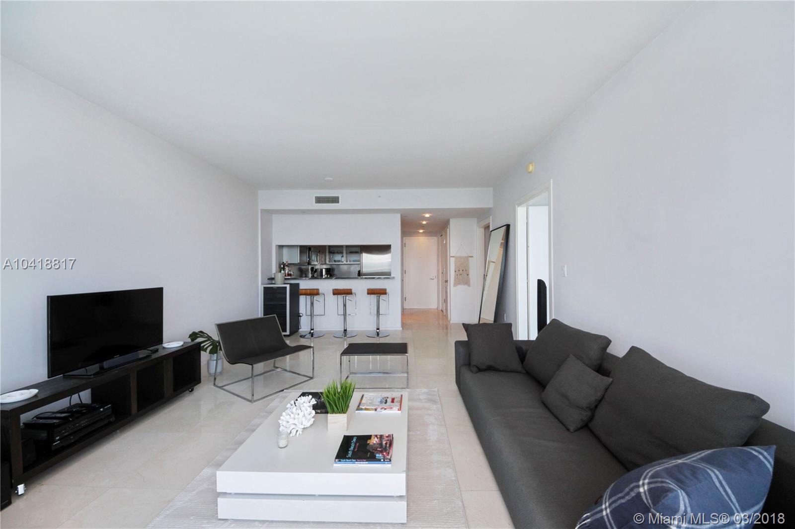 Breathtaking water, Miami skyline, and Star Island views from the 18th floor at the Bentley Bay. This 1 bed/1 bath features 24"x24" marble floor, custom-made blinds, floor-to-ceiling impact windows, open kitchen with Italian cabinetry, marble countertop, Sub Zero, and Miele stainless steel appliances. Large bathroom with bathtub and shower. Only 4 units per floor. Valet parking, pool, fitness center, spa, security, and much more...The Bentley Bay is located just a few steps away from The Miami Beach Marina, South Pointe Park, Whole Foods...Enjoy the sunset having a glass of wine on the balcony.