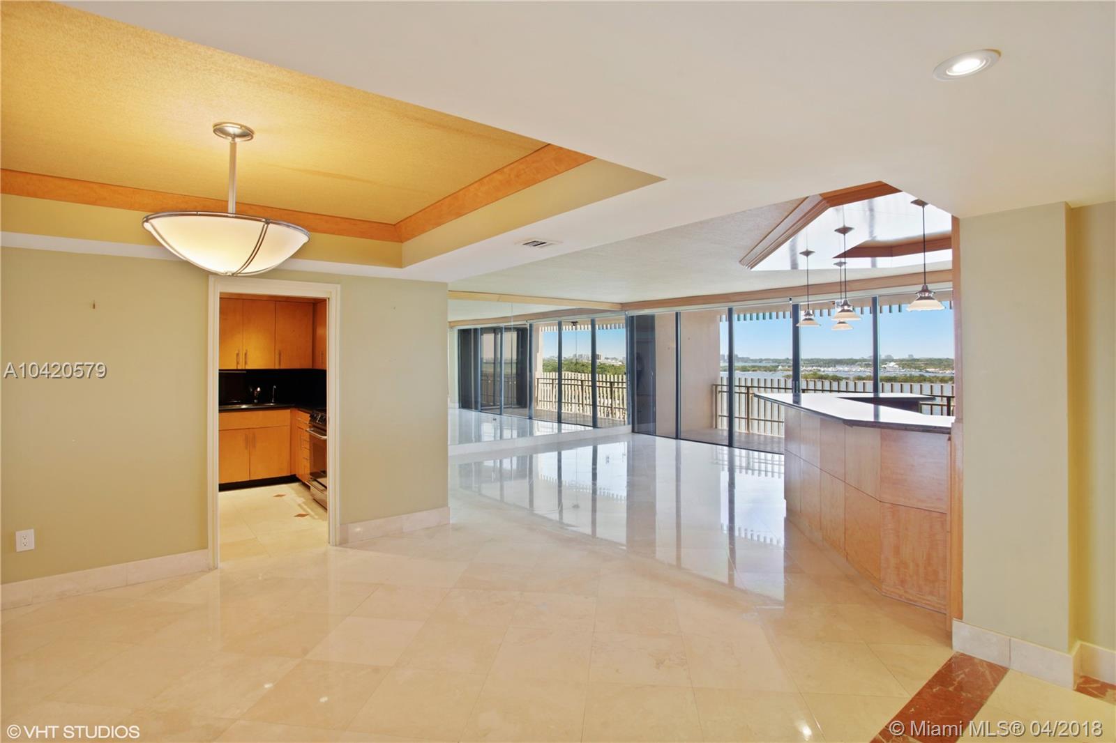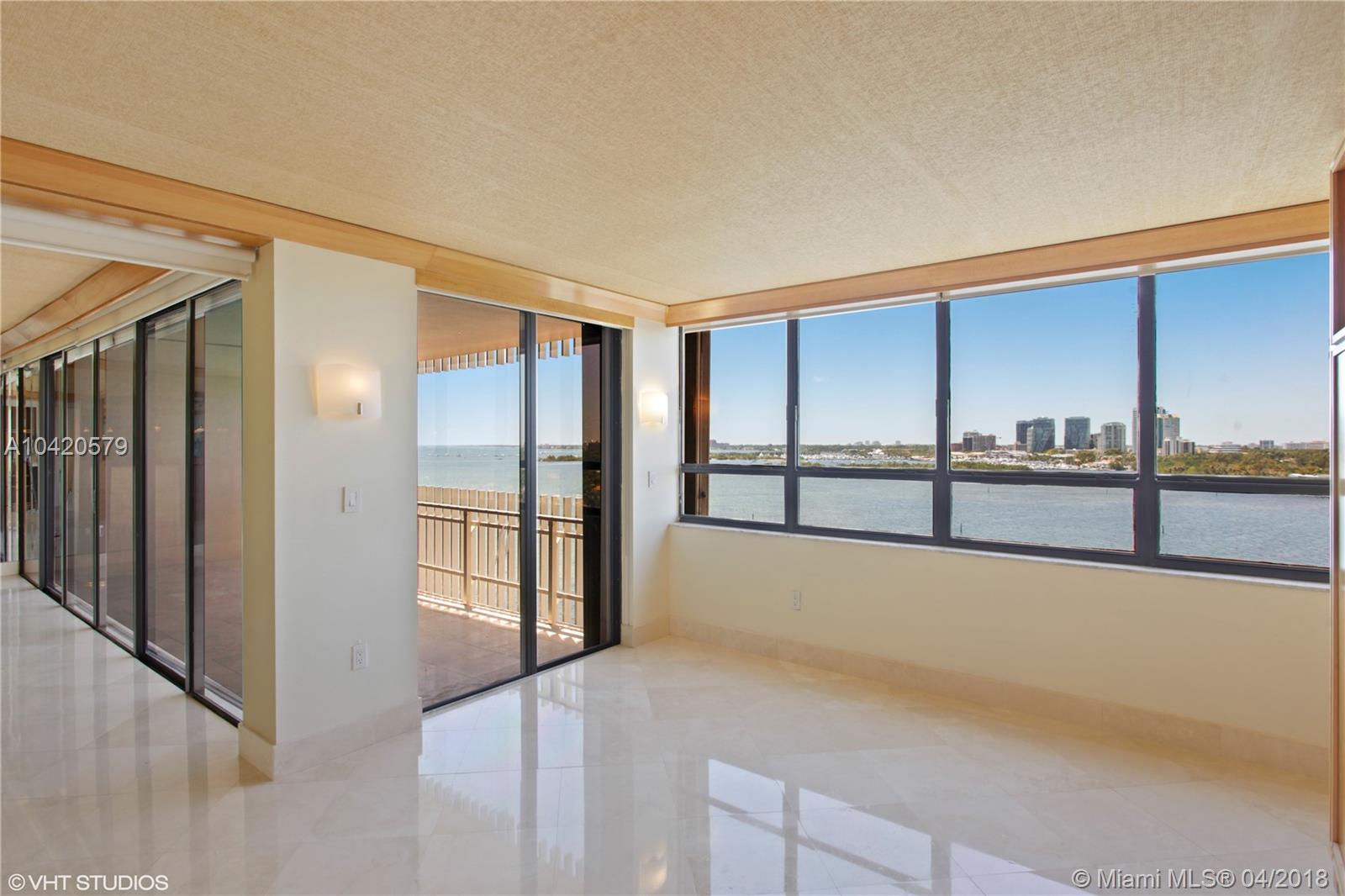 From the moment you walk in you begin to enjoy completely unobstructed wide bay and Coconut Grove views! This 2 bedroom, 2 bathroom residence offers marble floors in main living areas, a custom kitchen with stainless steel appliances, recessed lighting, updated bathrooms, electric window treatments and more! Enjoy watching the sailboats go by along beautiful sunsets from the terrace all year long. Live in paradise on a 20-acre guard gated island with full service and amenities.