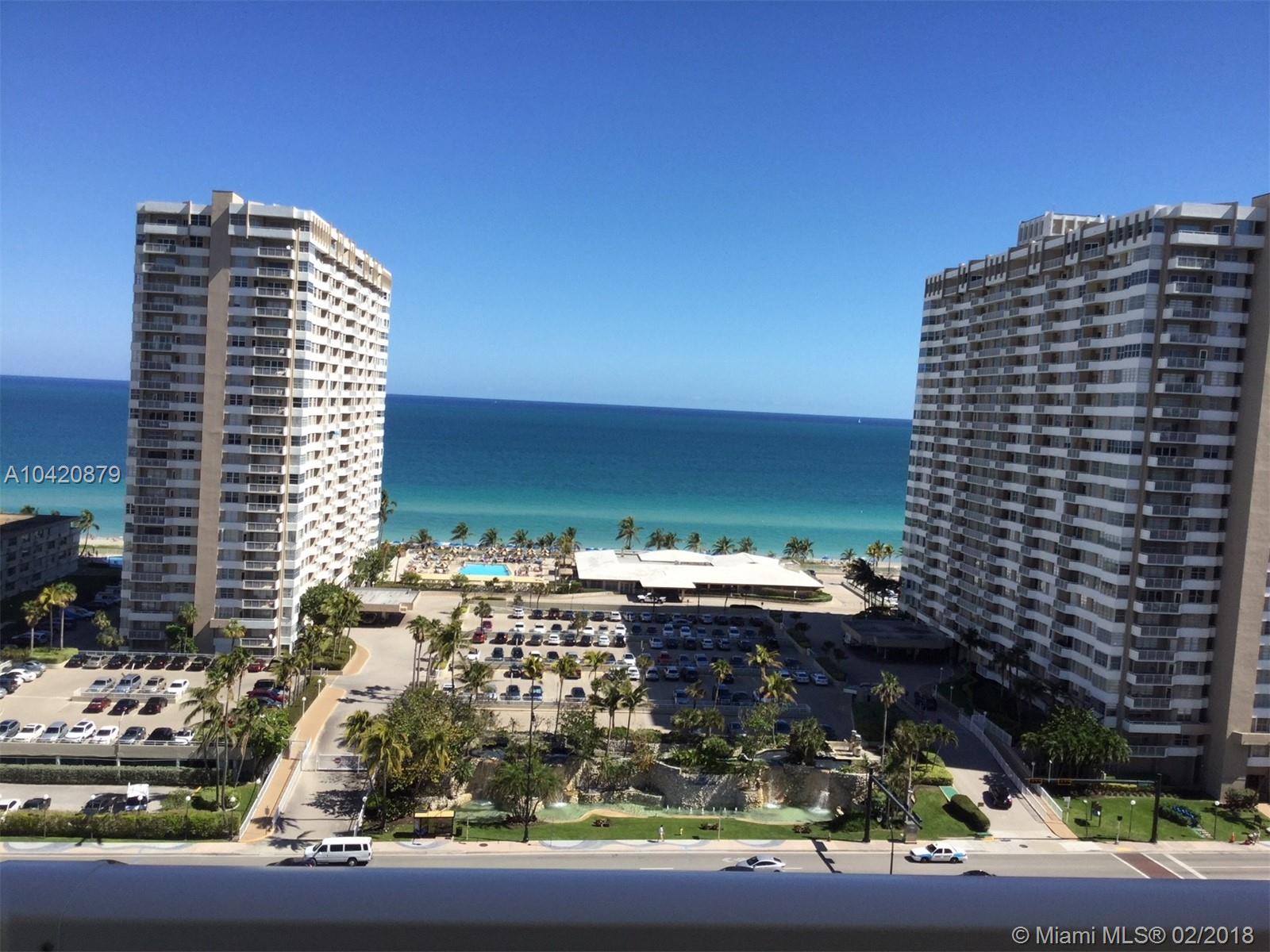 Two BEDROOM 2 BATH SE CORNER APT, HIGH FLOOR WITH SPECTACULAR VIEW OF OCEAN, AND INTRA-COASTAL. APT HAS HURRICANE SHUTTERS. RESORT STYLE AMENITIES, 2 HEATED POOLS, 3 RESTAURANTS, 3 GYMS, TENNIS COURTS, GOLF PUTTING GREEN, BOAT DOCKS, HAIR SALON, BILLIARD ROOM. 24 HR SECURITY, VALET AND COURTESY BUS.