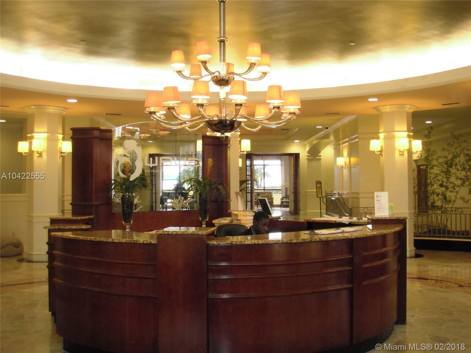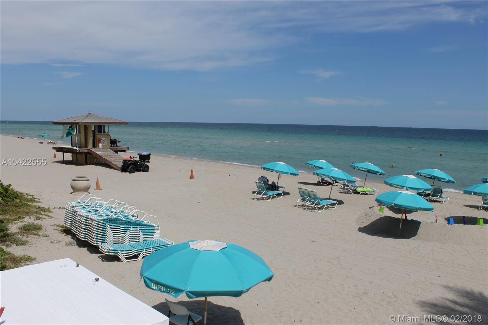 BRIGHT AND SPACIOUS FULLY FURNISHED STUDIO ON THE BEACH WITH OCEAN AND CITY VIEWS. TILE FLOOR THROUGOUT, WALK IN CLOSET. GREAT BUILDING WITH MANY AMENITIES, A BRAND NEW POOL AREA, WITH HEATED POOL AND JACUZZI. CONVENIENCE STORE, NEW GYM OVERLOOKING THE OCEAN. OK TO RENT FIRST YEAR. 90 DAYS MINIMUM RENT, 4 TIMES A YEAR. A/C AND BASIC TV CABLE INCLUDED IN THE MAINTENANCE. GREAT LOCATION, WALKING DISTANCE TO HOLLYWOOD BOARDWALK AND RESTAURANTS.