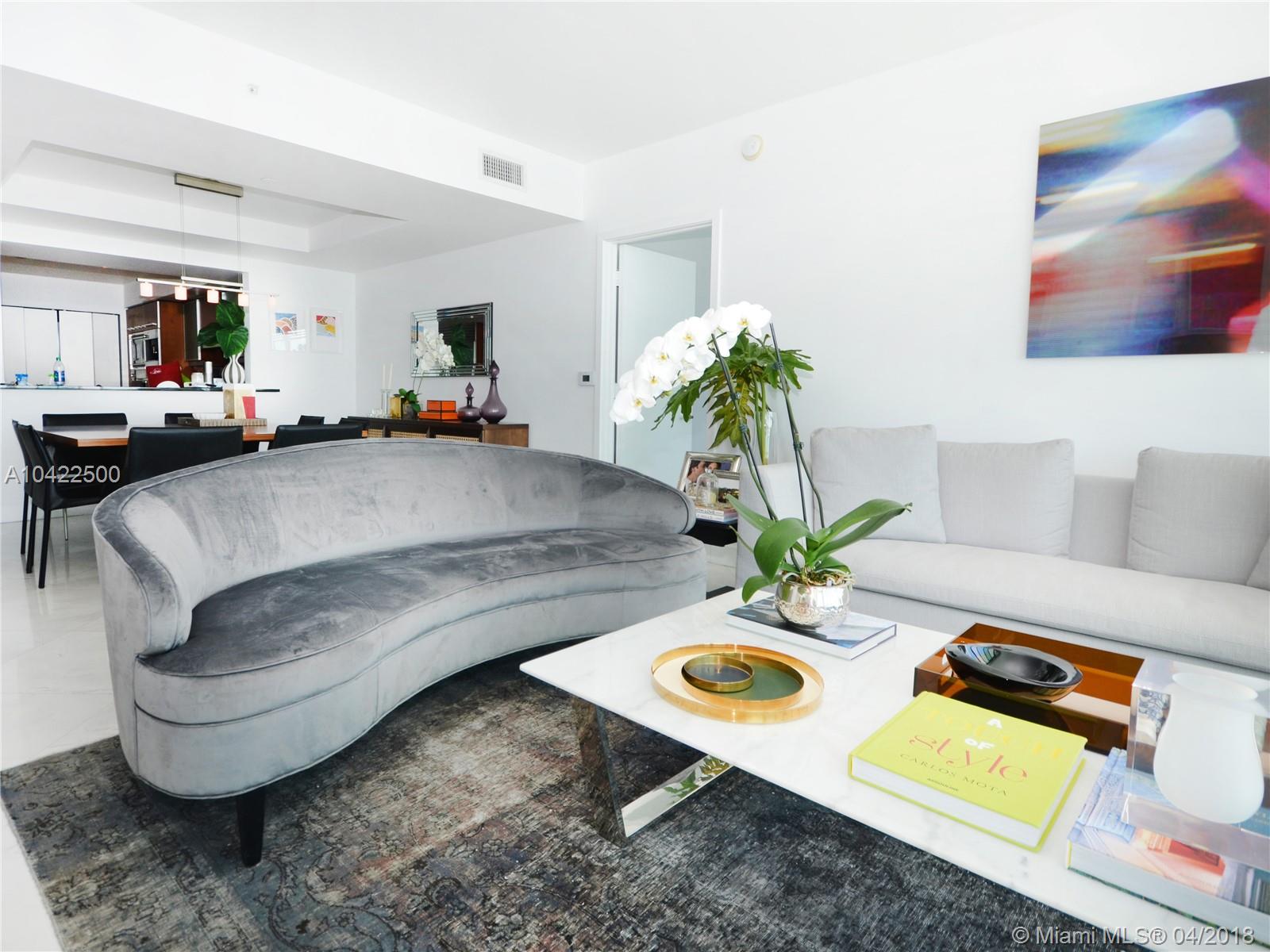 Direct water views from every room. Fabulous 2 Bedroom plus DEN & 3 full baths with no obstruction and private elevator leading to your own foyer. Unit in impeccable condition. Marble floors throughout, modern window treaments, built in closets, state of the art kitchen with Miele SS appliances and marble baths. Located In downtown Brickell in a luxury highrise with extraordinary amenities that include infinity edge pool, jacuzzi, wonderfully equipped gym with sauna and steam, racquet ball courts, business center, concierge, valet and management on site. Voted the best building on Brickell Avenue. Unit includes 1 parking and 1 storage.
