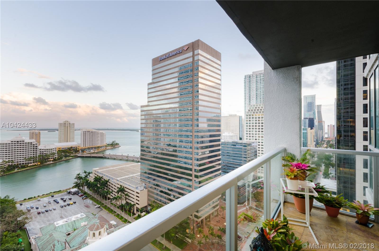 Enjoy best 2 bedrooms line in the building with ocean & skyline view. Marble floors throughout the unit including bathrooms. Crystal bar table attached to kitchen's counter top with 2 bar stools. Premium Italian cabinetry, quartz counter tops and stainless steel appliances. Fantastic amenities, rooftop pool deck, party room, theater room, gym, etc. Walking distance to plenty of restaurants & the newest mall Brickell City Center. Completely furnished with Italian signature furniture , art pieces , dinning table & more!