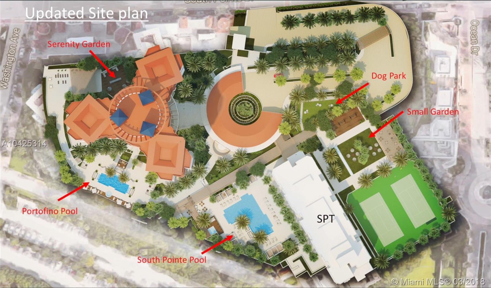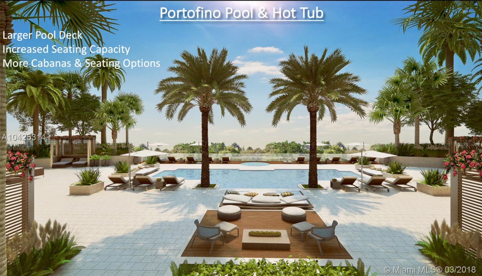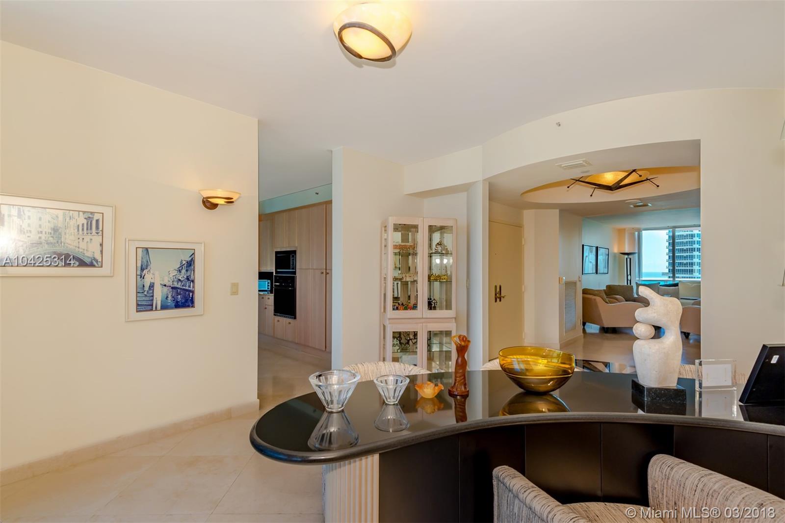Stunning unobstructed city & ocean views from every room in this spacious 2BD/2.5BA residence. Unique high floor residence clearing all the surrounding buildings. Featuring a spacious foyer and marble floors throughout. Features include a master suite with his/her walk in closets, a breakfast area with direct ocean views and two expansive balconies with privacy walls. Luxurious amenities include 24 hr security, two waterfront pools, tennis courts, dog park & sauna. $ 20 million+ Portofino remodeling project. Buyer gets all the benefits!