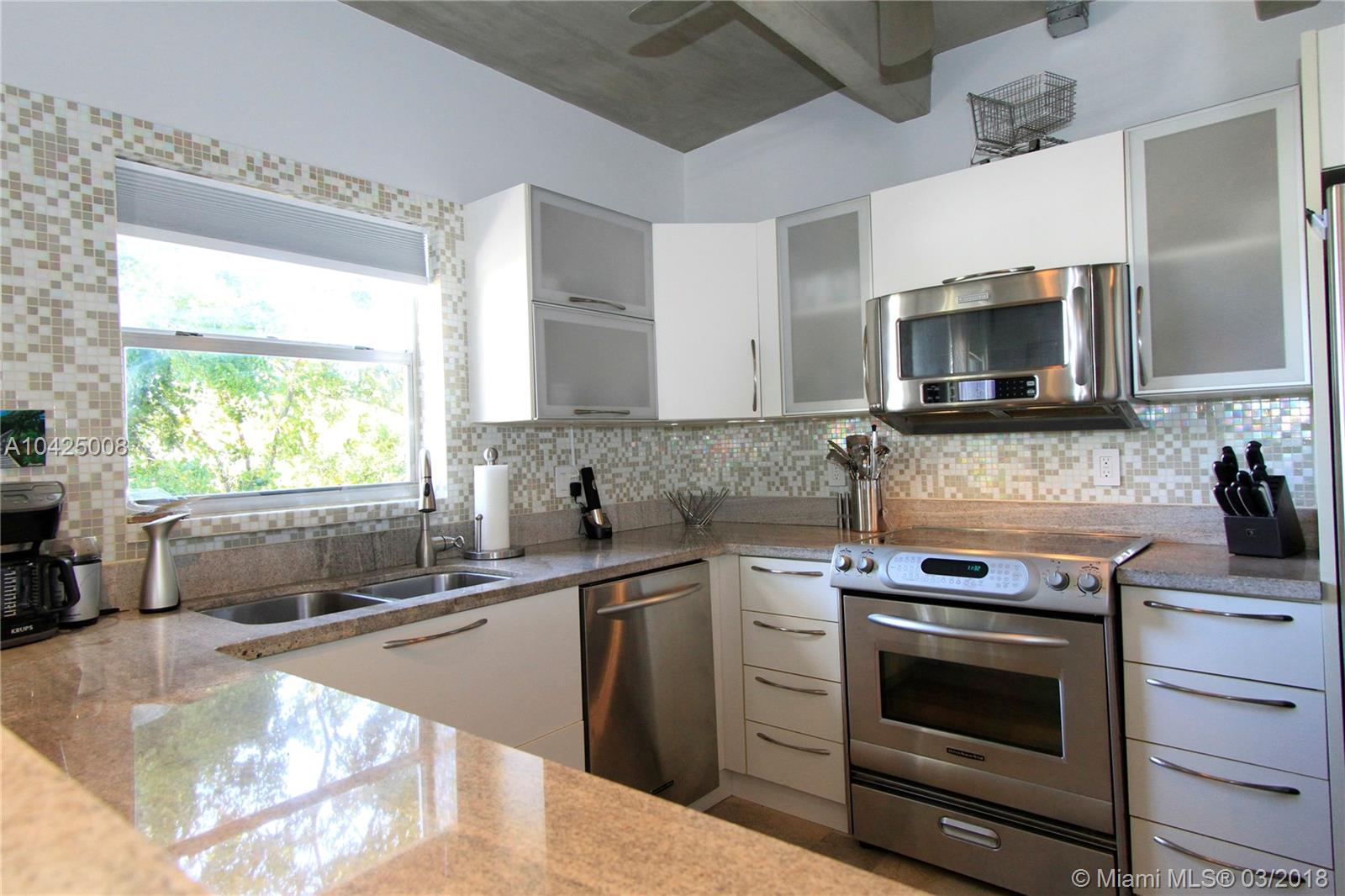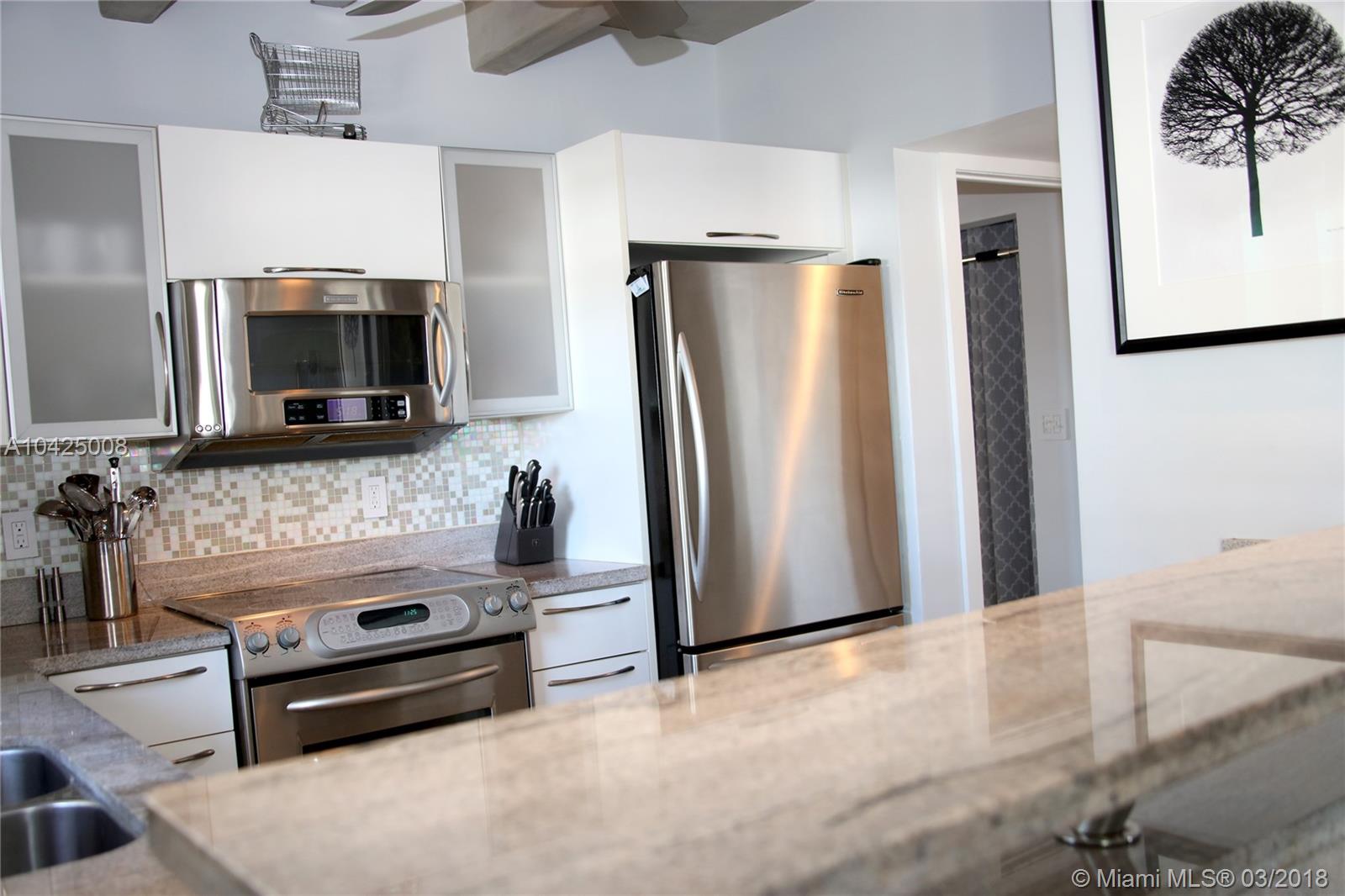 THIS IS SPECIAL! Top floor, entire width of the building, three exposures, surrounded by blue sky & tropical foliage on a quiet serene street in the Historic District with chic, modern finishes, gated covered parking & open balcony. Open living/kitchen/dining, half bath, bamboo floors, beam ceiling, S/S appliances, granite counters, dishwasher, wine cooler, rain shower, large bedroom & a walk in closet. Not the same old same old.