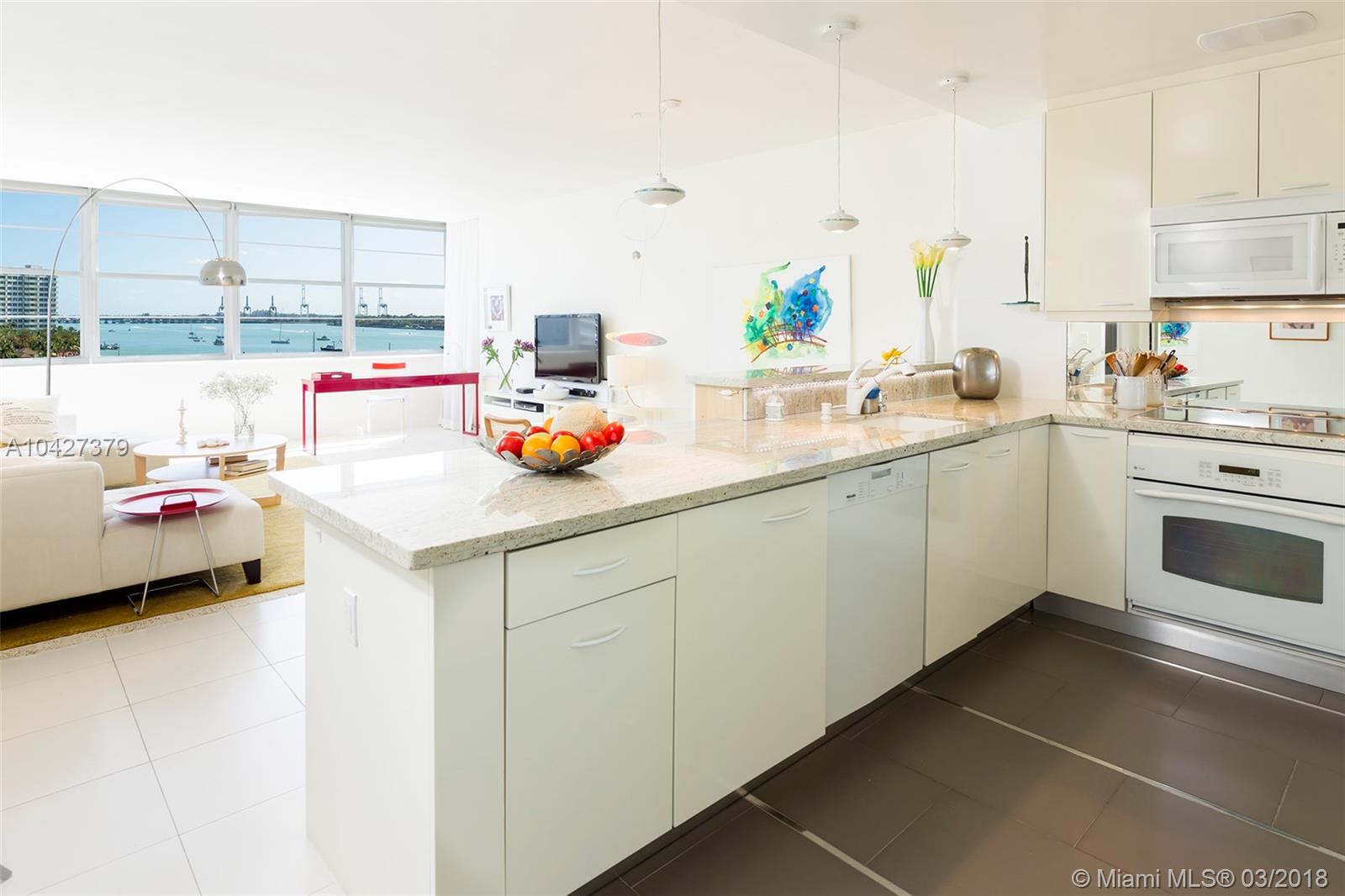 MUST SEE PROPERTY - CURRENT CONTRACT HAS CONTINGENCY - **WE ENCOURAGE BUYERS AND REALTORS TO SEE THIS BRIGHT AND AIRY RESIDENCE WITH STUNNING BAY VIEW’S**! This large 1 bedroom, 1.5-bathroom condo has tile floors throughout, modern open gourmet kitchen with granite counters, two beautifully remodeled bathrooms, beautiful views of the bay, pool, green tree tops from every window a large open balcony and more. Property amenities include 24HR concierge, gym, tennis and a bay front pool. Close to Lincoln road.