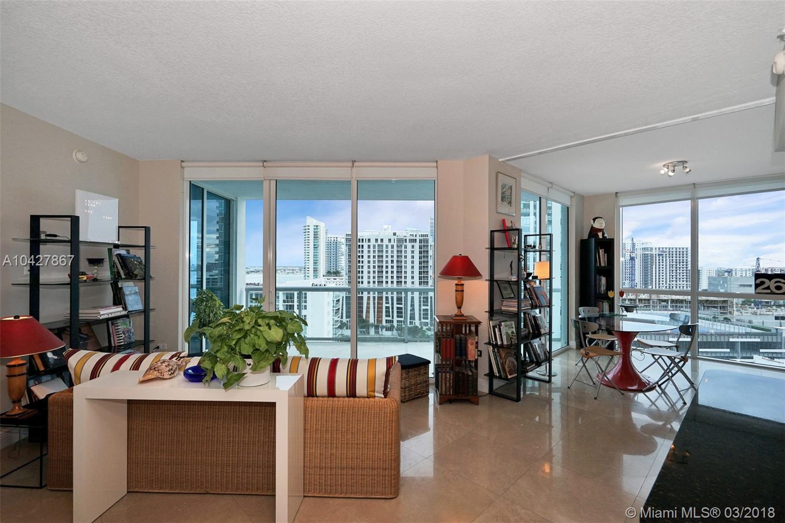 #StunningViews–Live the life of luxury in this phenomenal unit! Amazing Edgewater location is minutes away from everything. The awesome floor plan is open and contemporary. Amazing bay and Miami skyline views at every turn. Huge windows let in so much light to give this unit an incredibly spacious feel. Exquisite marble floors throughout. Kitchen is an entertainers dream with wide open views to the living room. This unit 2BR was opened to make a more expansive dining and living room. You will truly love waking up to views of postcard perfect Miami and the peaceful bay water view. Grab an even better vantage point from the large private balcony. This would be a great place to enjoy a lite lunch al fresco or even a glass of wine with good friends under the stars.
