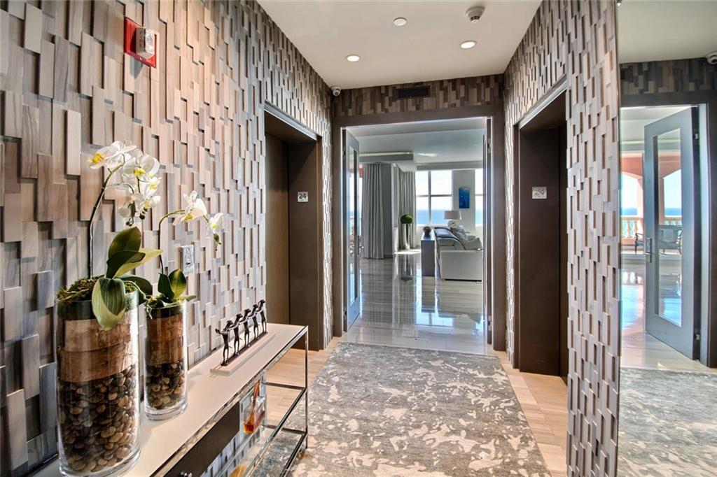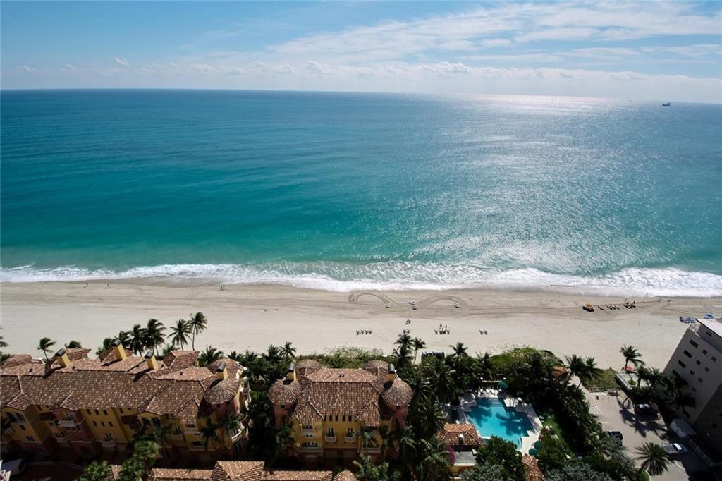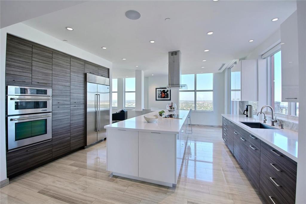 Stunning contemporary Penthouse on the sand with incredible ocean to downtown views. Huge combined open air and covered terrace that wraps almost 180 degrees around the unit. Perfect for the entertainer with massive cook's island and eat-in kitchen, large formal dining with seating for 14 and custom bar--all with views from east to west. Modern split floorplan with his and hers master baths and closets, large laundry and separate den area, Marble plank flooring and more. Must see!
