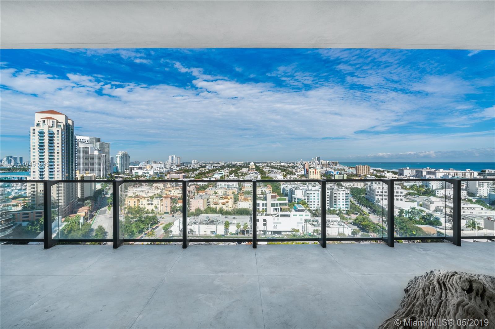 Enjoy incredible views of the ocean, Fisher Island, and the South Beach scenery from this South/North facing residence in the prestigious Apogee South Beach condominium in South of Fifth. This rarely available 3-bedoom 4-bathroom + den unit offers a flow-through floor plan, high-end finishes, wood floors, large living room, open style kitchen with an island and Miele appliances next to the family room, master suite with a spa-like bathroom with glass walls, and 3 large bedrooms. The 11-foot wide balconies feature a summer kitchen for the ultimate entertaining experience. Unit comes with an air-conditioned 2.5-car garage and a private elevator. Indulge on the luxurious amenities offered by Apogee: new pool area, gym, valet, security, beach services.