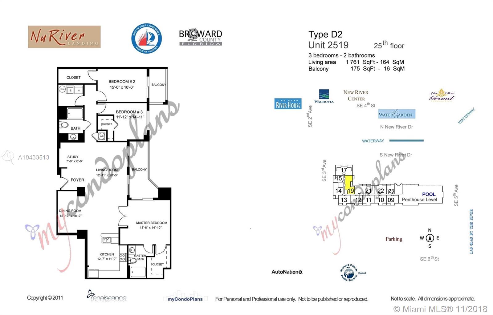 PENTHOUSE AVAILABLE for sale at the Nu River Landing in Downtown FTL facing the New River! From the minute you enter the views are spectacular of the New River, Las Olas, City & Ocean. Offering two balconies to choose from this 3 Bedrooms, 2 baths condo offers a split floor plan with 1761 SqFt of living space a gourmet kitchen with granite countertops and SS appliances, lots of closet space, Laundry room & study area. Nu River Landing is a luxury building with FIVE STAR AMENITIES INCL 6TH FL MEDITATION GARDEN & JACUZZI, ROOFTOP POOL & CLUB ROOM, 2 STORY GYM W/ BASKETBALL & RACQUETBALL COURTS, BUSINESS CENTER & SPA, 24 HR VALET/SECURITY.
