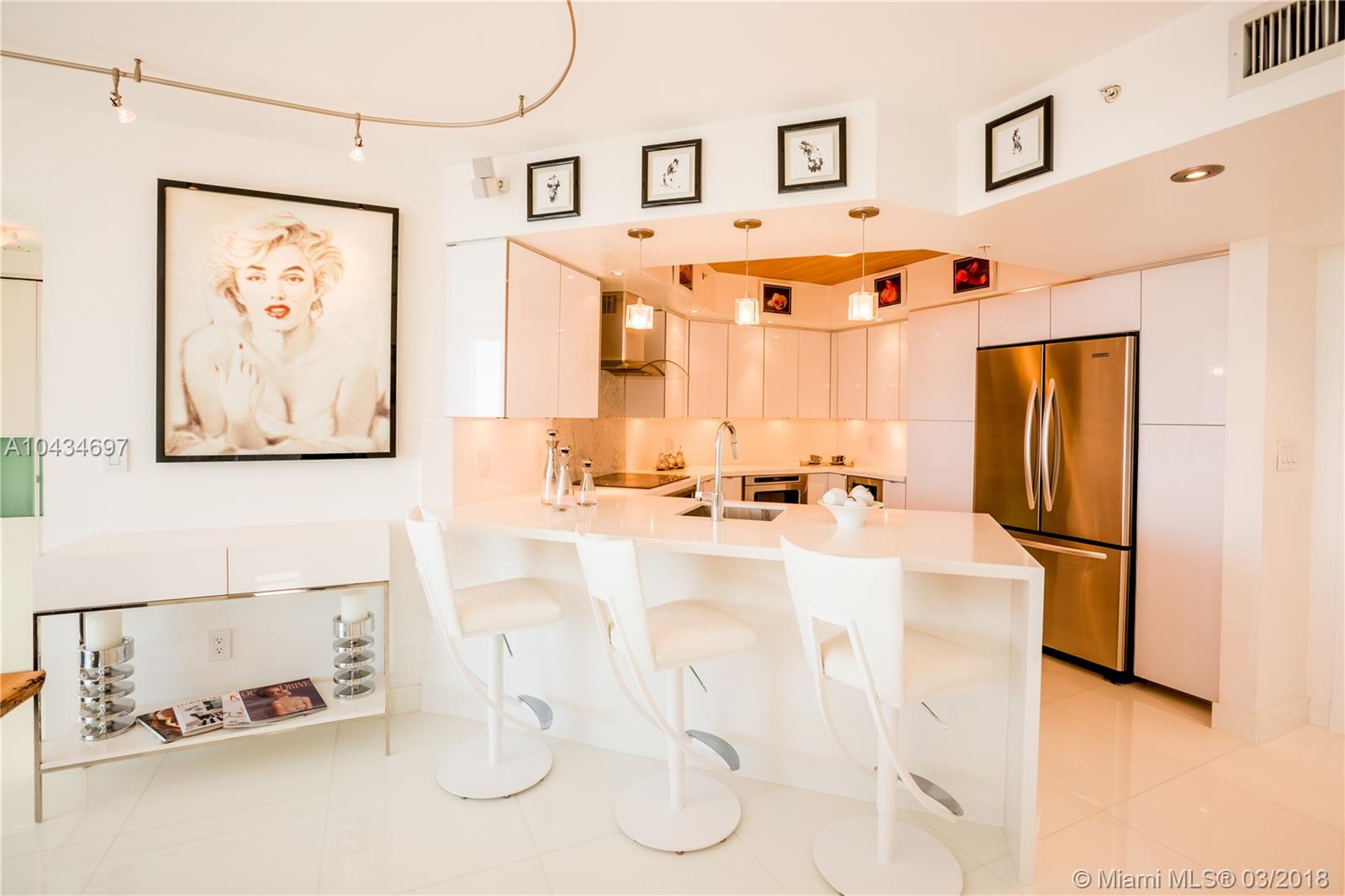 Modernized meticulously to every detail, this turn key 2BR/2B split plan is built to excite. Glass white porcelain flooring harmonized with imported high end textures, fixtures and appliances. Open kitchen design allows for the best of conversations between you and your guests. Enjoy morning coffee from your built in Miele espresso maker. Master bath designed to be your private spa. Expansive balcony embraces the morning sunrise. Views of South Beach’s famous art deco lights and sunset shimmers. Doorman, salt-water pool, sauna and gym. This South Beach Haven is surrounded by finest restaurants, gyms and boutiques. Lincoln Road, Manicured Parks, Marinas and White Sandy Beaches within walking distance to fulfill the Miami Beach desired lifestyle of indoor/outdoor transitional living.
