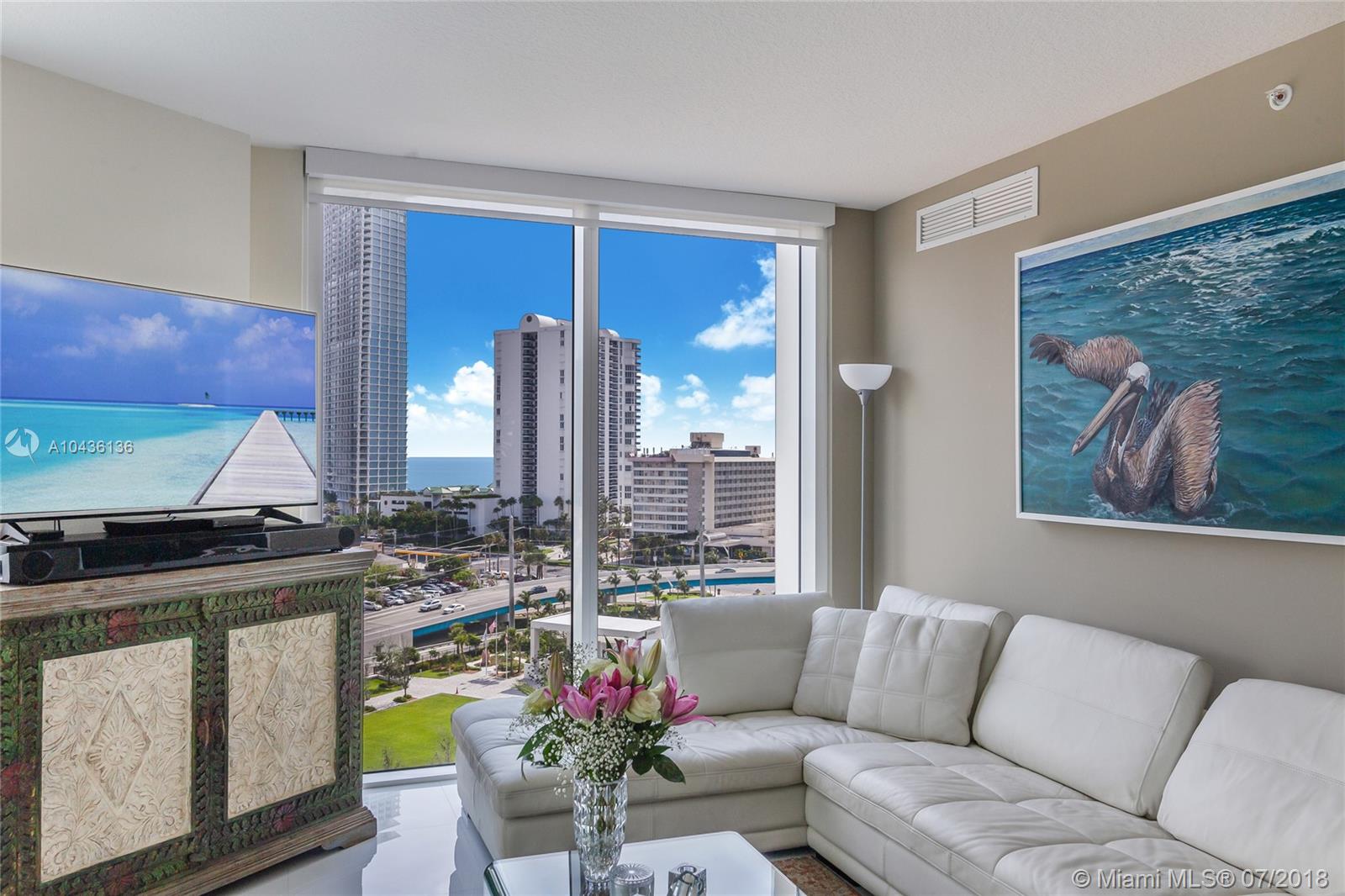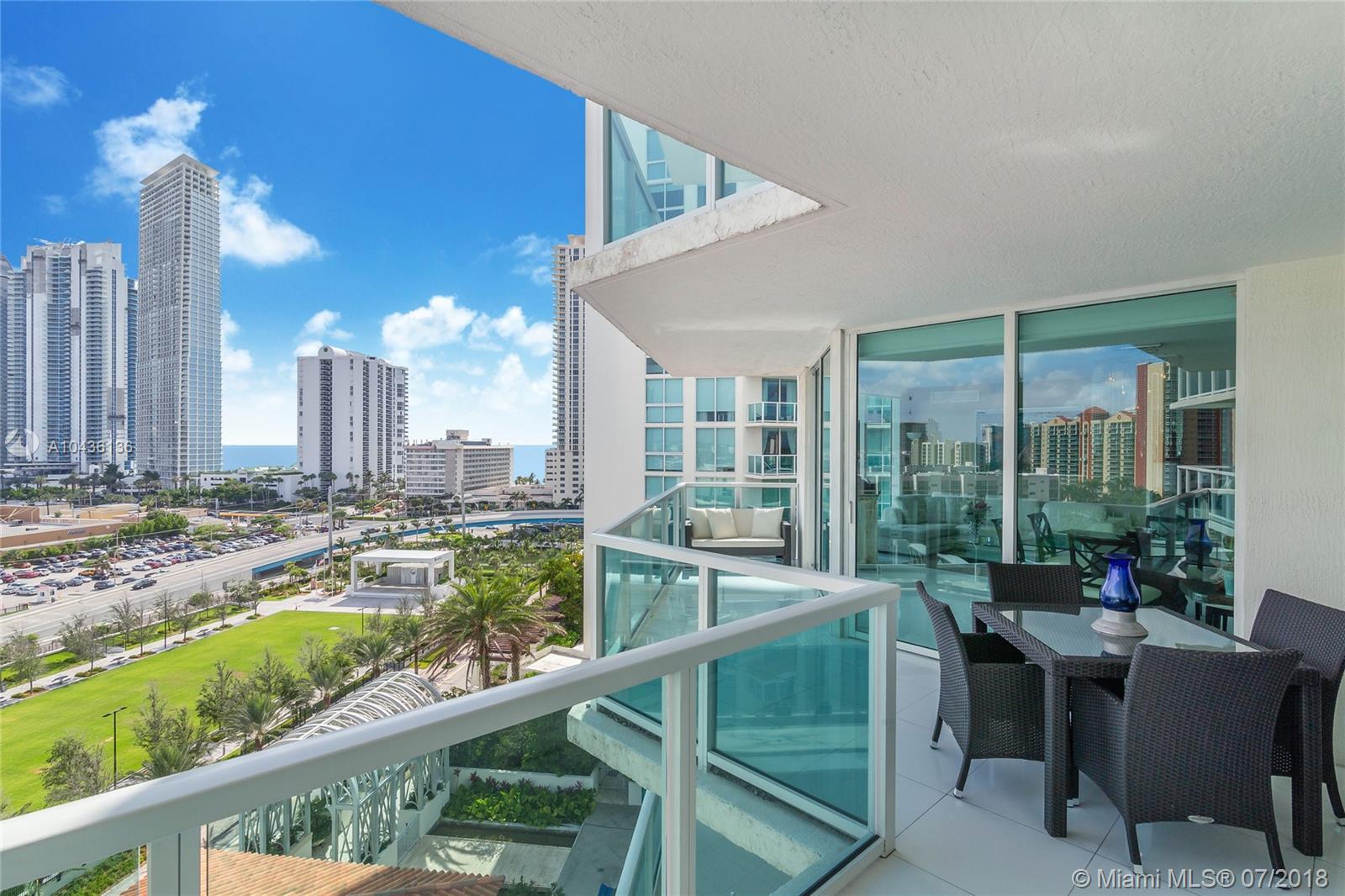Beautiful apartment 3 bedroom/ 2 bathroom with partial ocean view and all sunny isles beach coast view. Oversized balcony, crystal white floors, modern open kitchen with beautiful backsplash, custom made closet at bedroom. 2 parking spaces, 1 assigned and 1 valet. Amenities: Fitness Center, Pool and Bussines center.