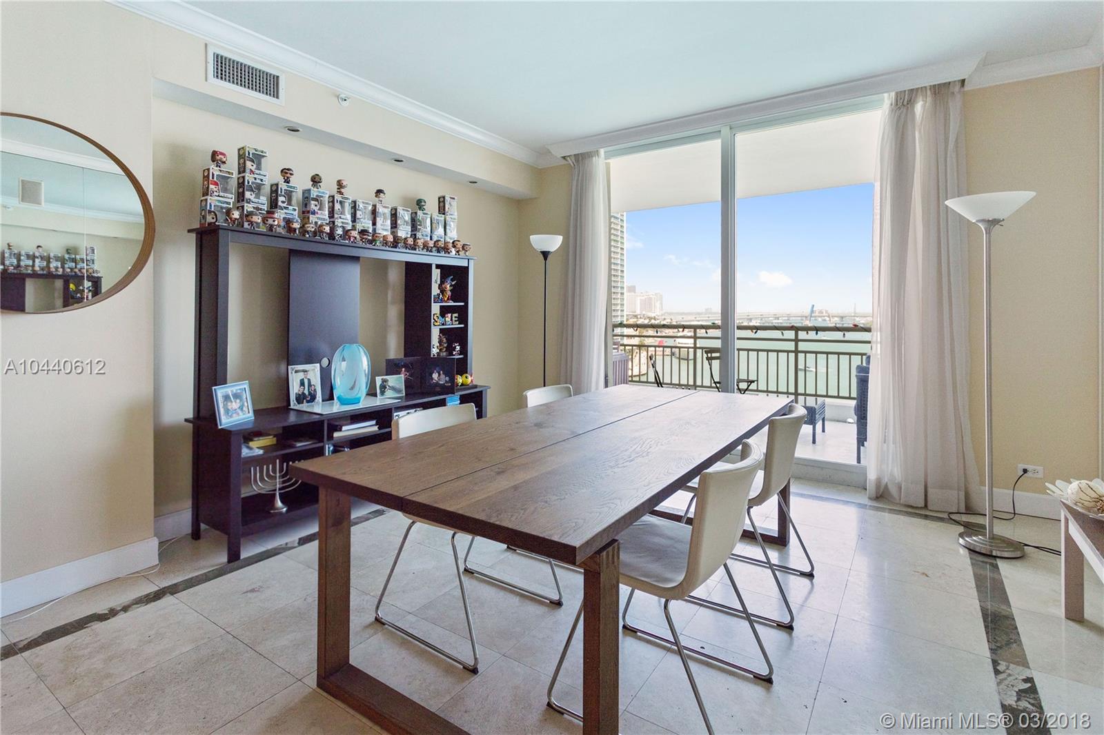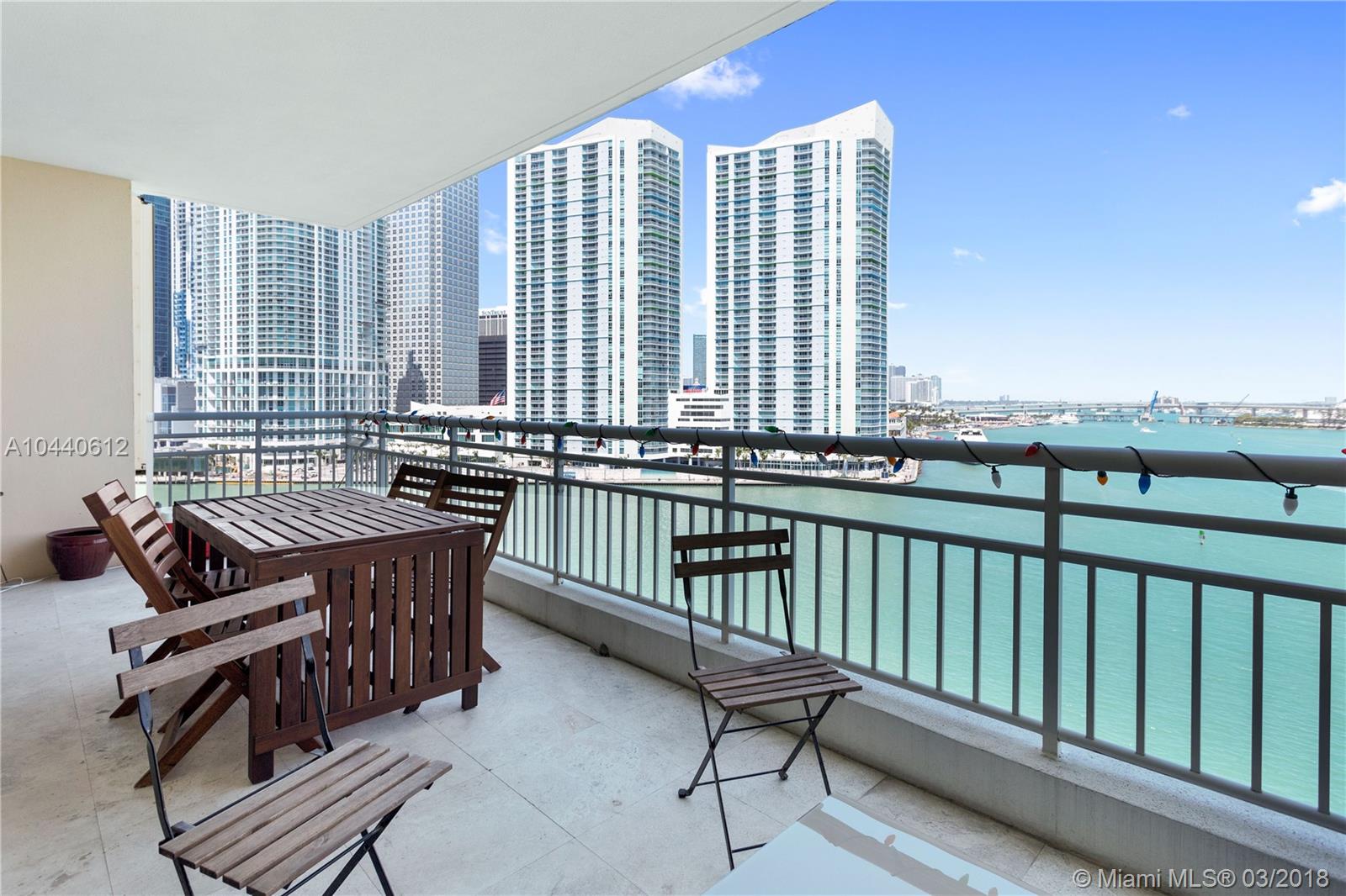 Enjoy the convenience of living in the heart of Brickell with the safety & tranquility that Brickell Key ISLAND offers! This 3 bedroom 2.5 bath unit has spectacular sweeping views of the bay & the port of Miami from all rooms. Enjoy the large balcony overlooking the bay as you relax after a long day. The master includes a walk-in closet, double sinks, shower and large bathtub. 2 side-by-side parking spaces and 2 storage units. One Tequesta Point is a full-service building with heated pool, jacuzzi, clubroom, gym, racquetball, squash, sauna, and more! The safety of Brickell Key includes shops & restaurants with parks and a beautifully landscaped walking pathway on the waters edge.