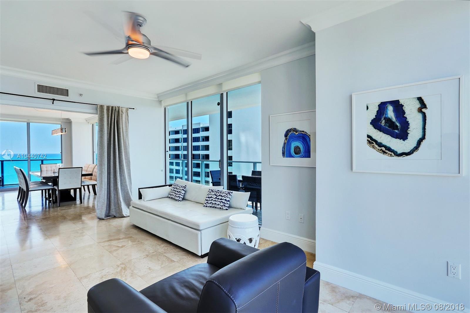 Sophisticated residence with fabulous direct ocean and intracoastal views will be your beachfront retreat. A private elevator will take you to this unique Unit. Enjoy the views from your two large wrap around terraces. Marble floors. High end appliances and finishes. Luxury amenities include valet, beach and pool towel service, theater, billiard room, club room, tennis court, BBQ. grills, 2 story fitness center overlooking pool and ocean, Sauna, Lockers, Massage room, etc. Unit sold unfurnished.