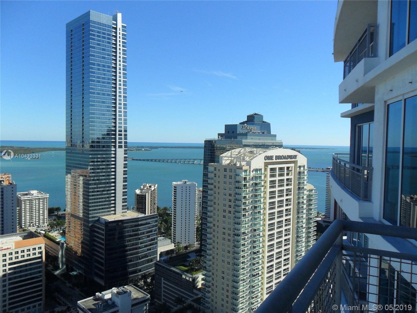 Stylish, Cozy, Tastefully Upgraded 2 Bed/2.5 Bath Two Story Condo with great Bay and Skyline views- featuring a modern Kitchen, granite counter tops, back splash, SS Appliances; Porcelain Tile floors throughout, automatic Shades in the living room... lots of light-Enclosed Master Bedroom and Partially Enclosed Second Bedroom/DEN with full Bathroom and extra closet space. This unit has East and West exposure with two private balconies facing either direction. Infinity at Brickell amenities include sophisticated lobby, great club house and lounge, exercise room, heated pool, Jacuzzi, sun deck, on site cafe/market, and on site restaurant. This is a must see!!