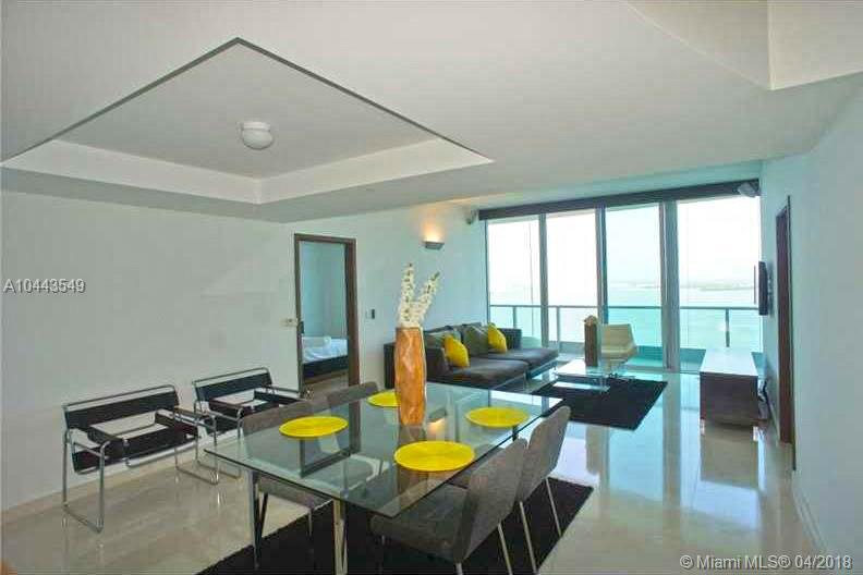 This 2 bedroom 3 bathroom unit features top of the line appliances, limestone flooring in the living and dining areas, cherry wood floors in both bedrooms, California closets, marble bathrooms & remote controlled window treatments that open up to an unobstructed view of Biscayne Bay and the ocean. This unit also features a spacious den/work office space off the kitchen for those who simply need a little extra space!! It can be easily converted to a third bedroom.