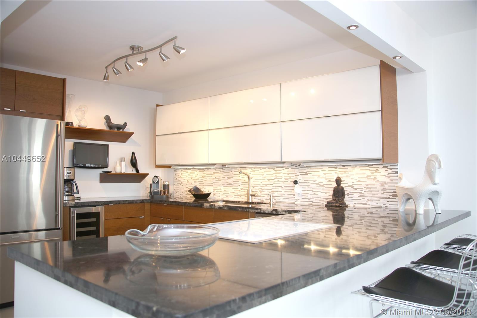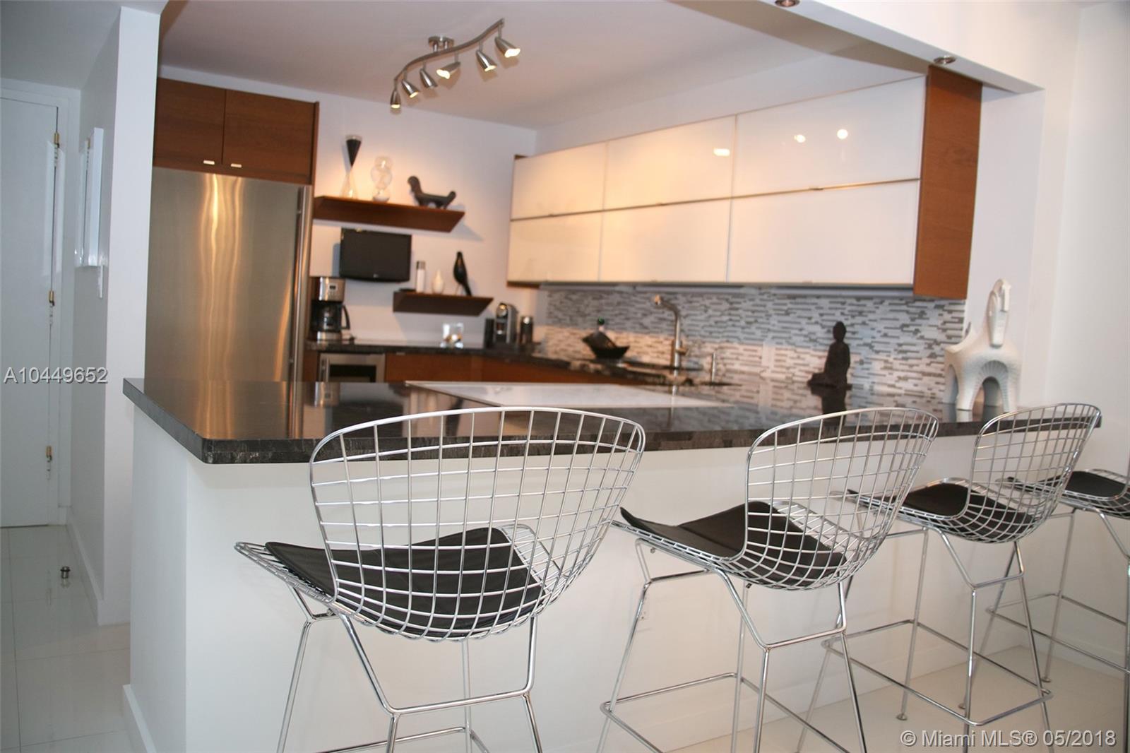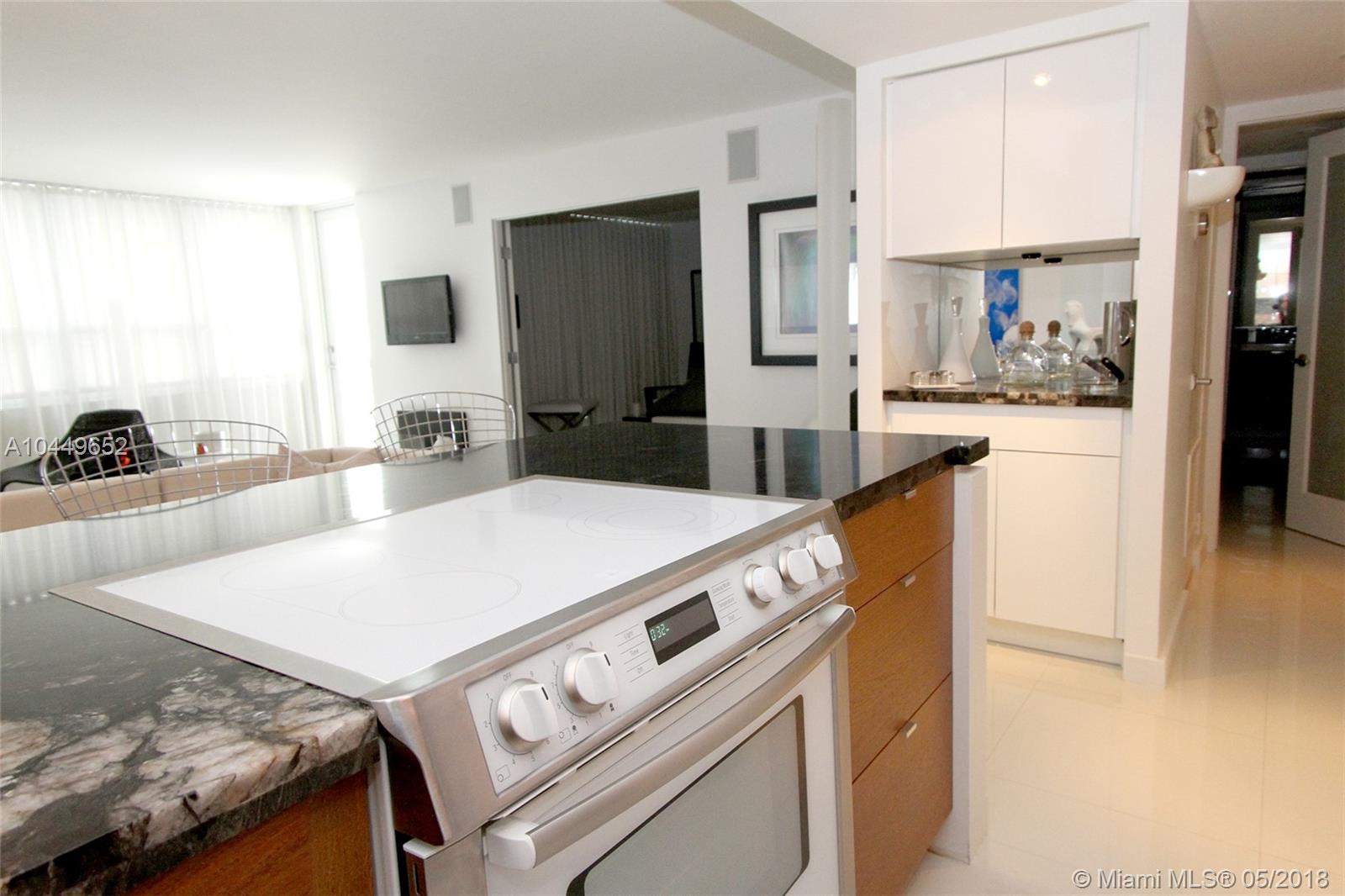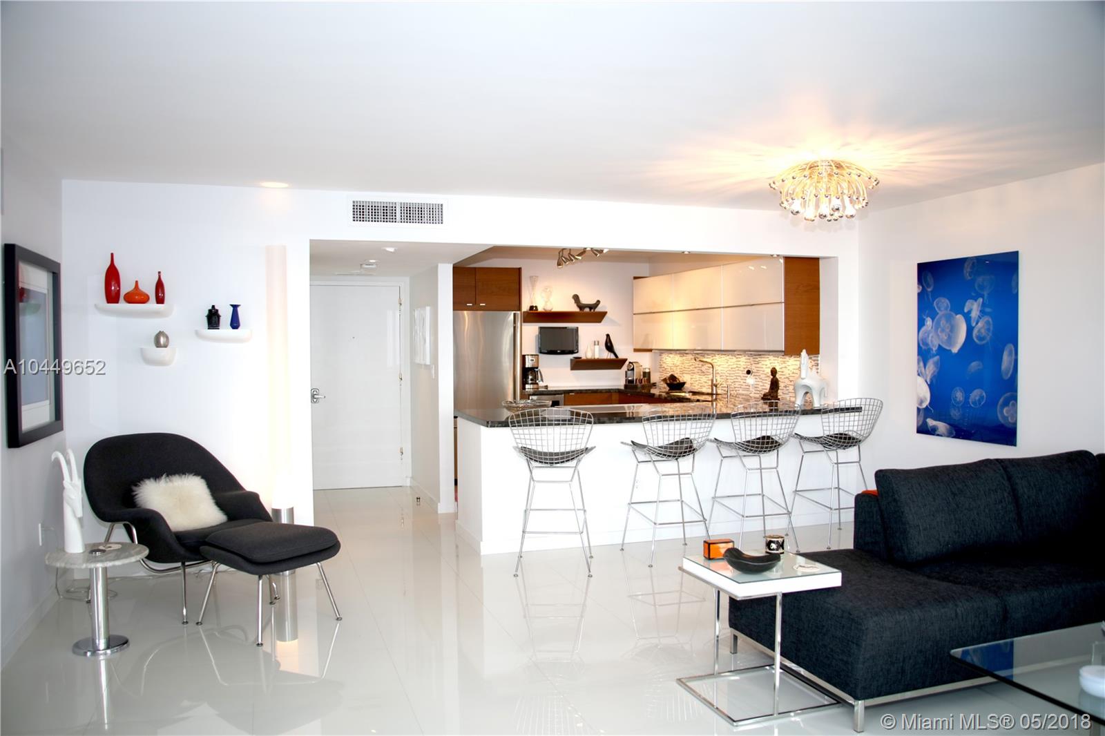 Sit back,relax. You won't have to do a thing. Beautifully finished home with white porcelain tile floors, contemporary open kitchen with wine cooler, built in sound system, impact windows/doors, & large open balcony. Really MOVE IN ready. Pet friendly building undergoing major updates. New elevators, hallways, lighting, mezzanine, lobby. NEW. And assessment has been PAID. Will be transformed. Great amenities include heated pool, bicycle/paddle board, kayak storage, valet, doorman, gym, BBQ & more. Best beach neighborhood- & CAN install individual washer/dryer in the unit.