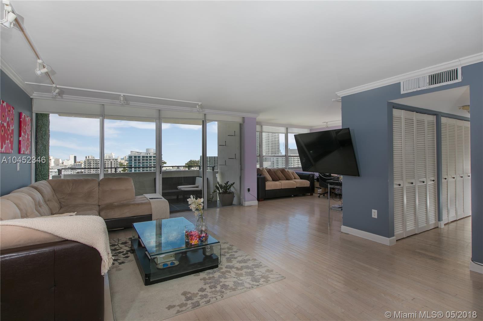 Freshly painted, refinished wood floors. Super-sized updated 2/2 with beautiful porcelain tile floors, open balcony, and tons of storage. Building being updated from top to down-new elevators, hallways, updating gym, lobby, mezzanine-ALREADY underway and will be gorgeous! FUN-tastic location-minutes to Beach, spas, sports, bars, world class dining & more. Minutes to Downtown Miami/Airport/UM/MT Sinai, and I95. Great amenities include 24/7 doorman, security, valet, heated pool, gym, sauna, BB court, BBQ grill, floating dock for paddle board/kayak, moped/motorcycle parking, bike room & assigned covered parking.